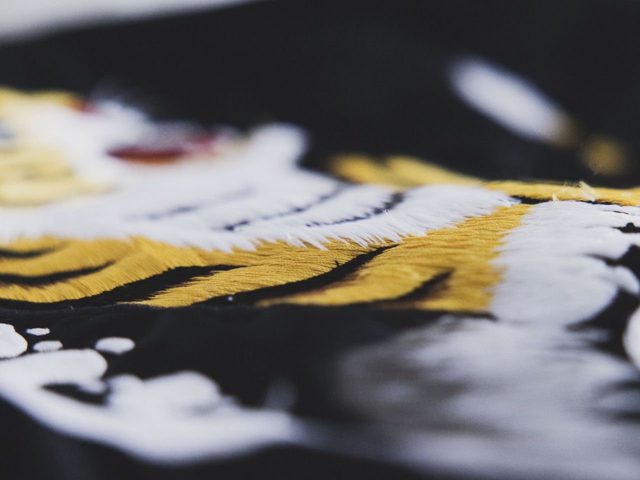 横振り刺繍は糸の方向を縦横に変えて重ねていくので、描かれた龍や虎は光を受けて躍動します。見る人は瞬く間に、刺繍が表現する世界に引き込まれるでしょう。