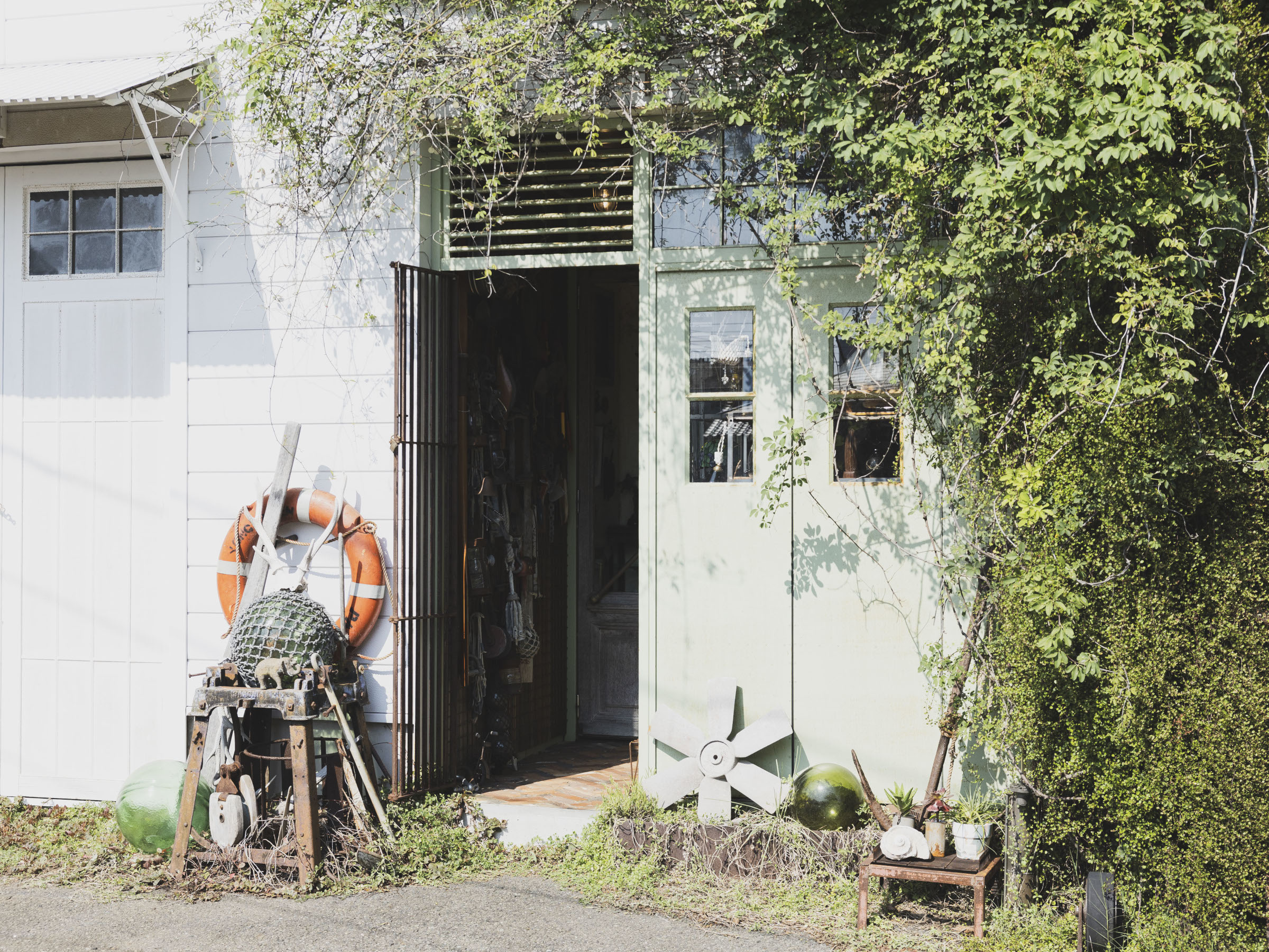 店主・堀場央さんは本業であるアイアン溶接加工の技術を活かして、もともとアパートだった建物を鉄工房と古道具店、そしてギャラリーに作り変えました。海から流れ込む潮風と港町ならではの空気感を纏う店内では、懐かしくも新しい暮らしになじむ古道具に出会うことができます。