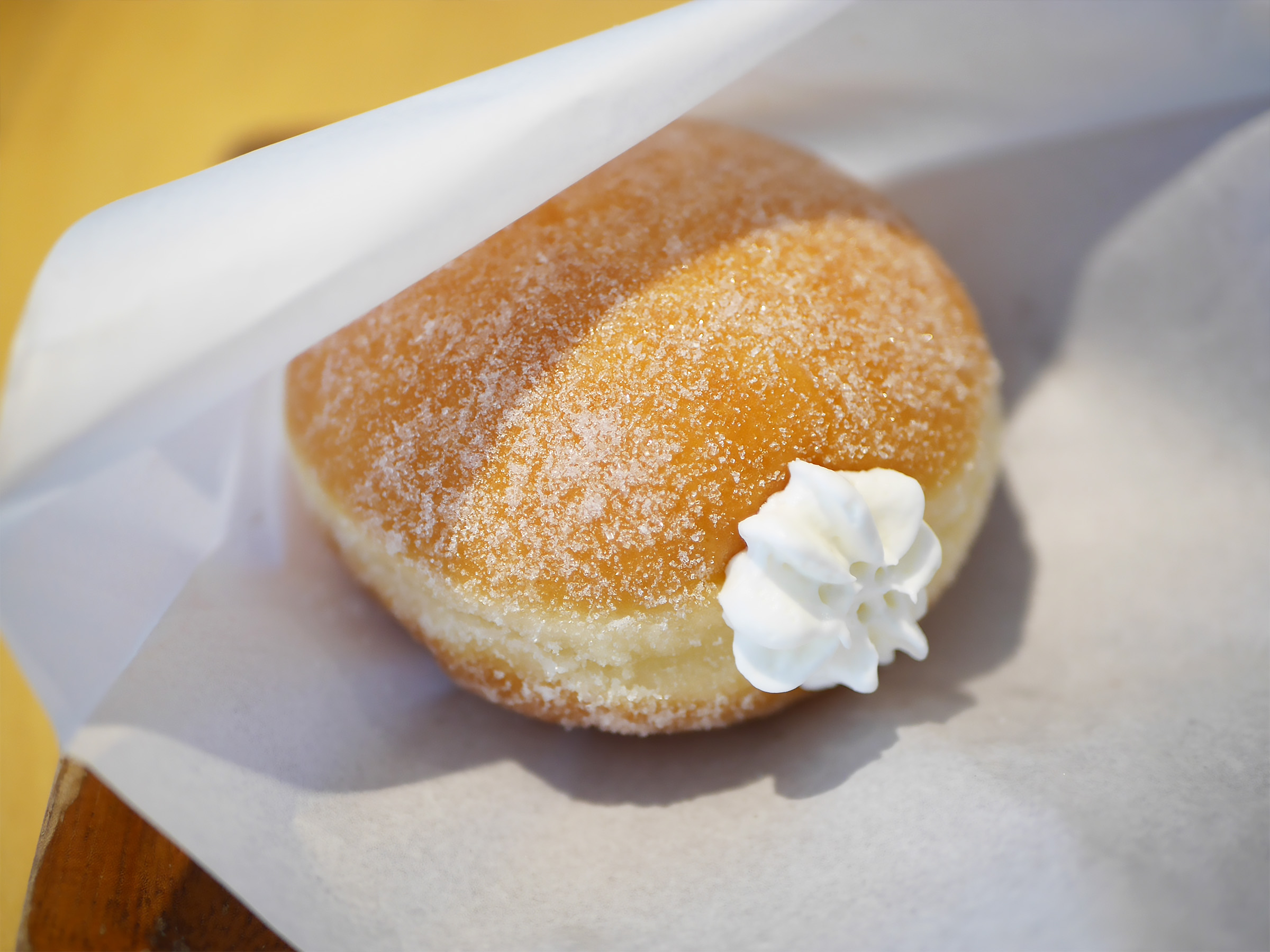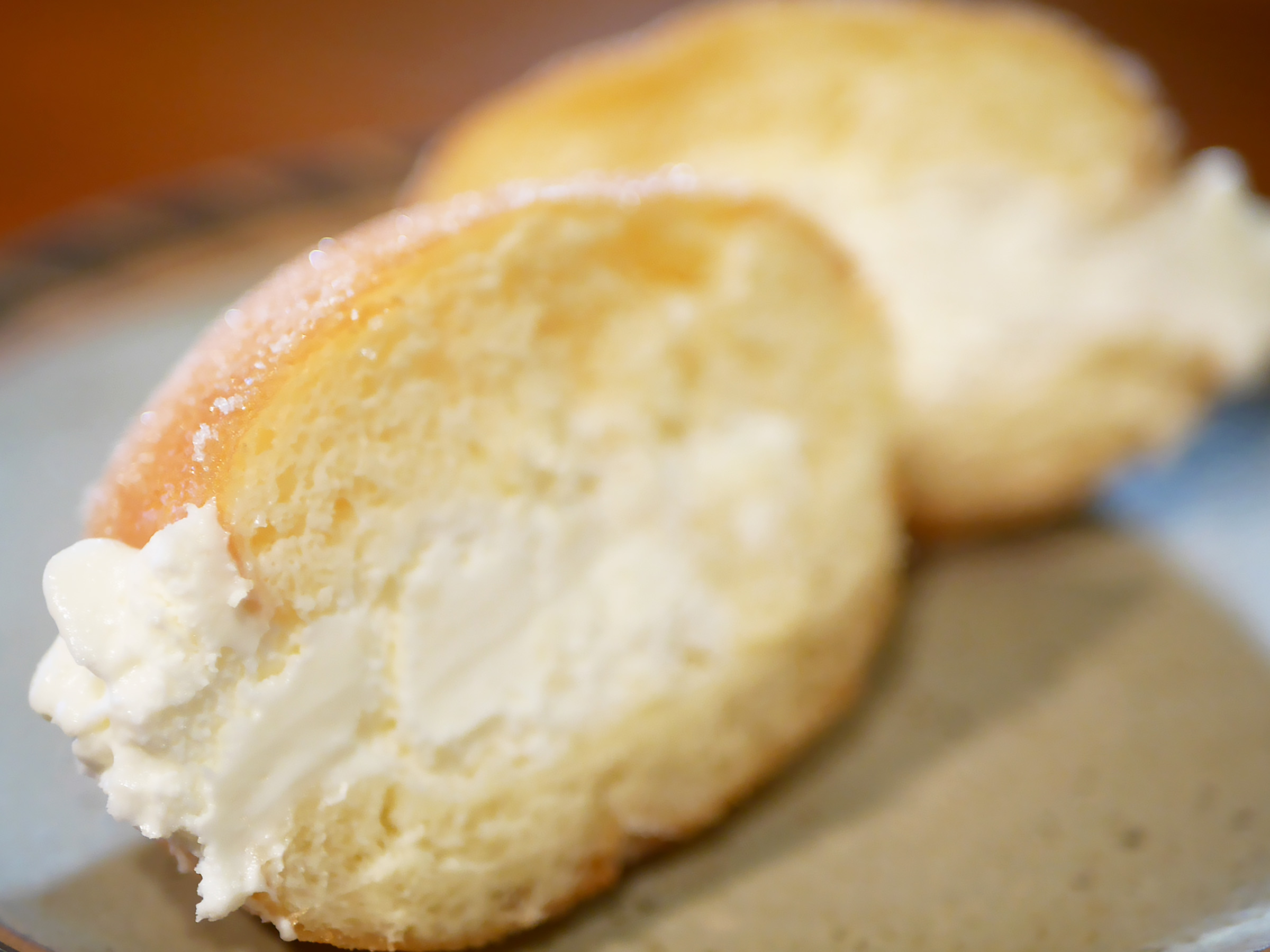 その特徴を最も感じられるのが、グラニュー糖をまぶしたシンプルな「シュガー(300円税込)」や、たっぷりの生クリームを詰めた「+生クリーム(120円税込)」の組合せです。