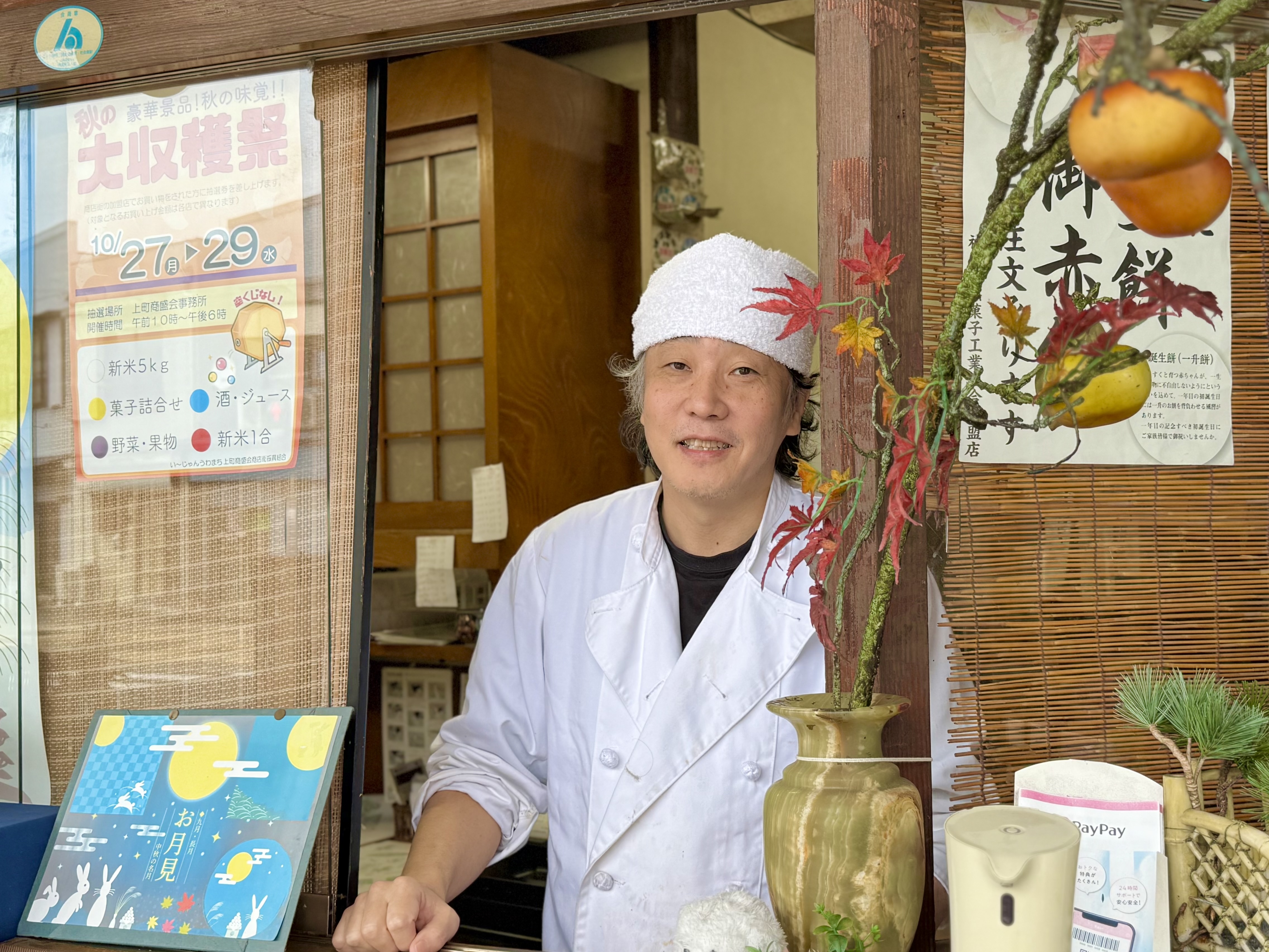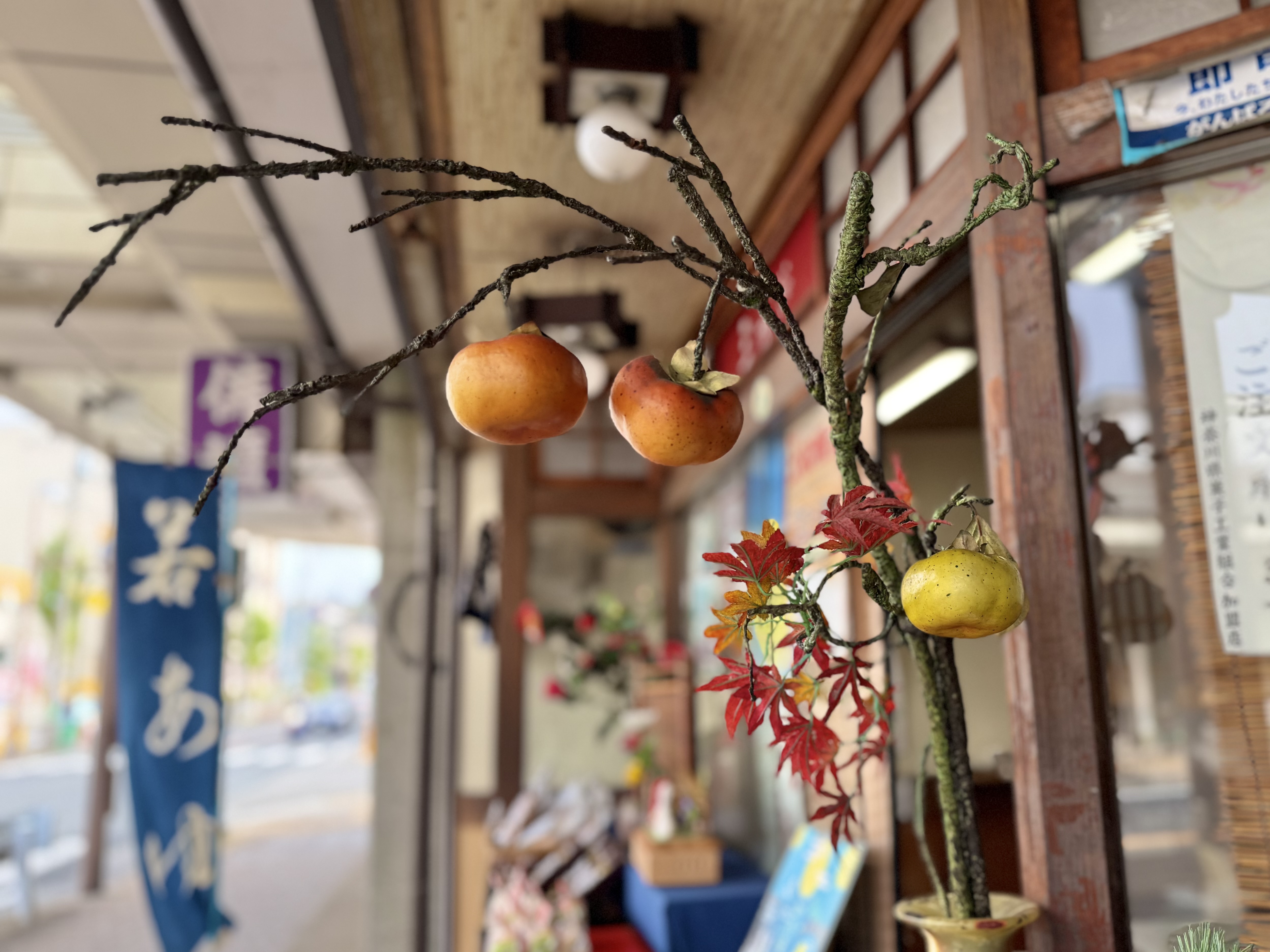 秋には柿やすすき、冬には小さな干支飾りなど、店頭の小さなスペースには、季節ごとの飾りが並びます。