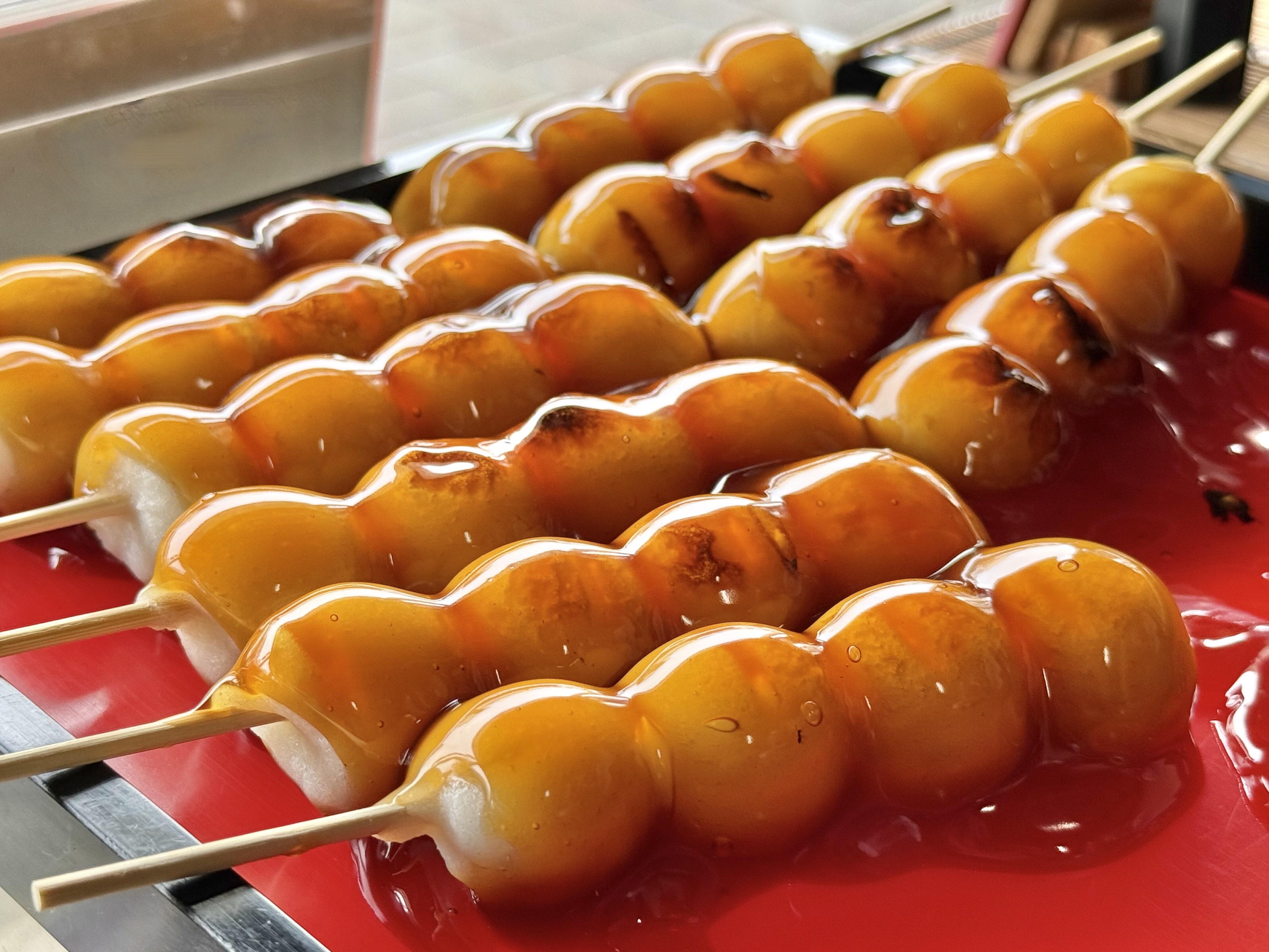店頭で一際目を引くのが、つやつやと輝く「焼きだんご」。