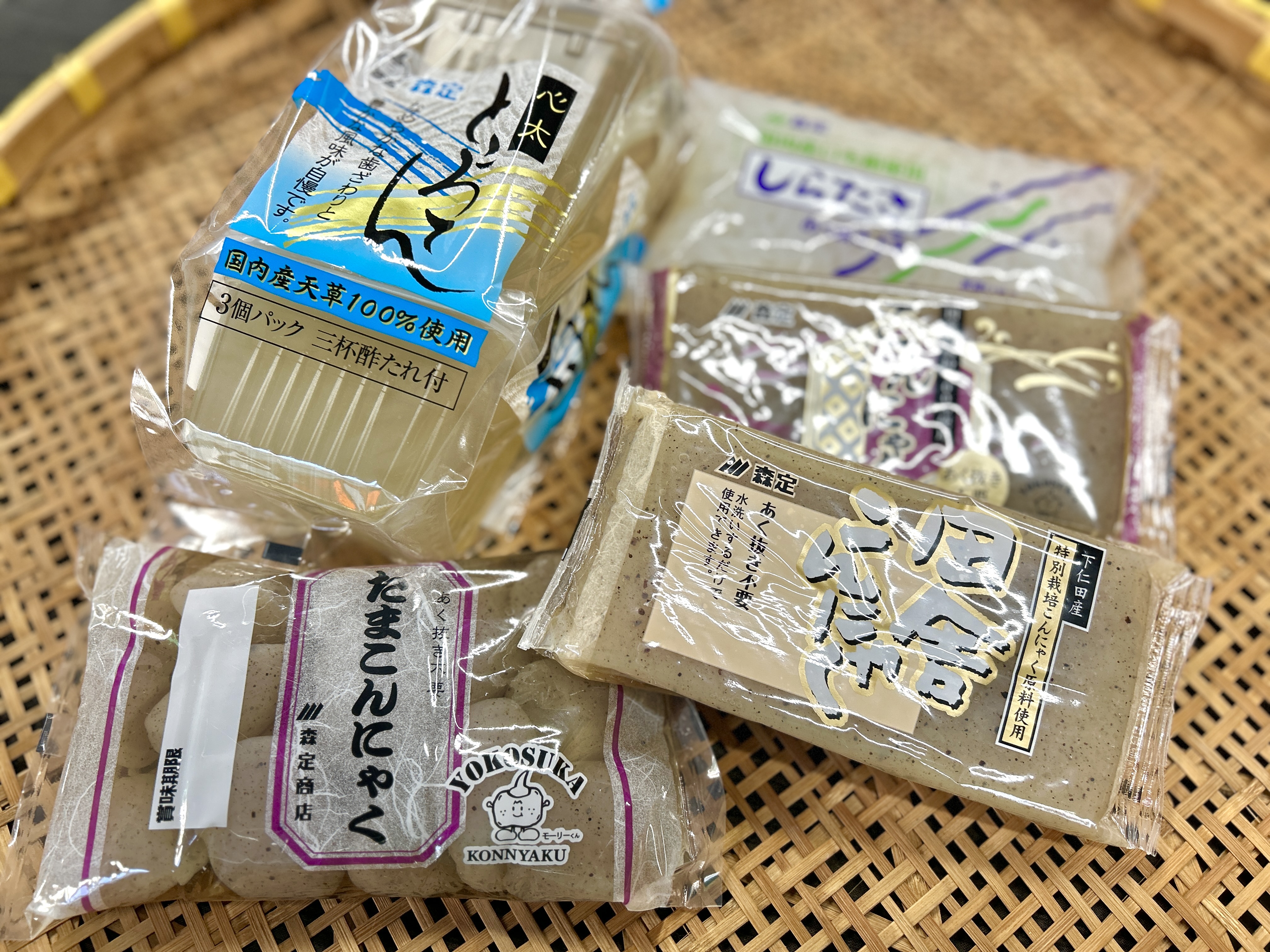 こんにゃくはあく抜きなど事前の下処理が大変というイメージがありますが、森定商店のこんにゃくは、あく抜き不要、短時間でしっかりと味が染み込むのが特徴です。
