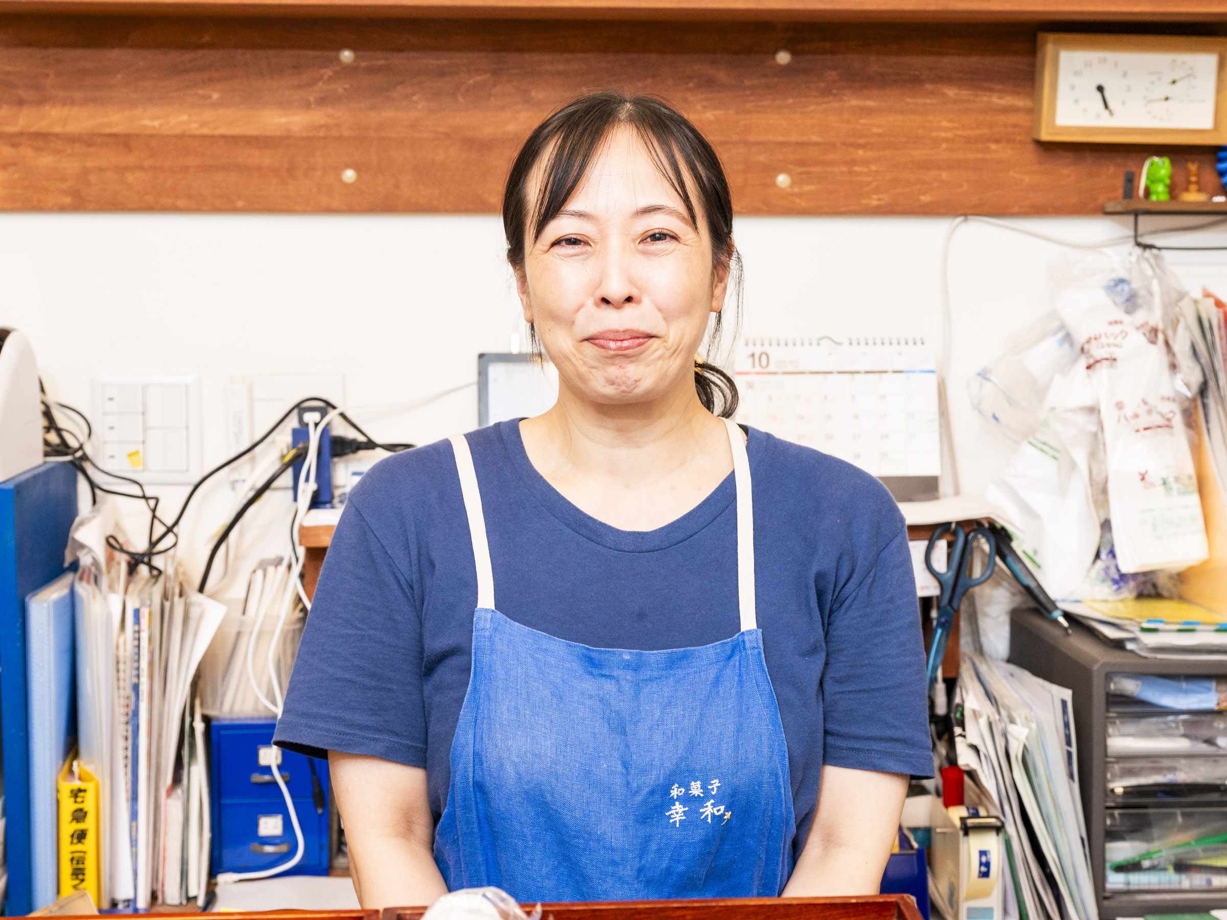 のれんをくぐると、ふんわり甘い香りが漂う「和菓子 幸和」。山口幸昌さんと和世さんご夫婦がつくるのは、季節の果実を包んだ大福や、4姉妹の名前から生まれた“なっちゃんまんじゅう”。