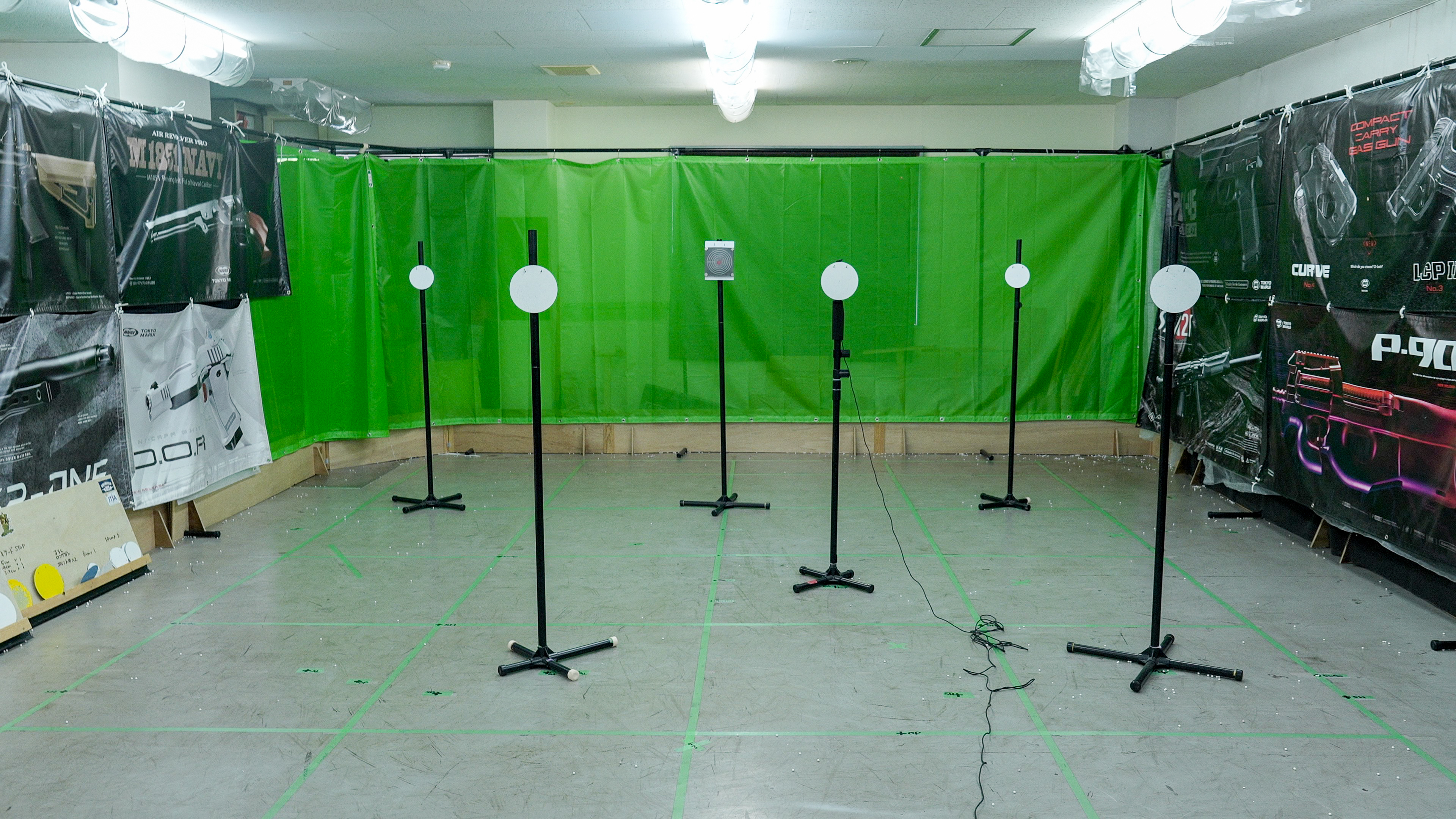 エアソフトガンスポーツシューティング競技は、ランダムに並ぶ5枚のターゲットをいかに早く撃ち終えるかを競うスピードシューティングと、射撃の精確さを競い合う精密射撃競技の2つに分かれます。今回はスピードシューティングにチャレンジしました。