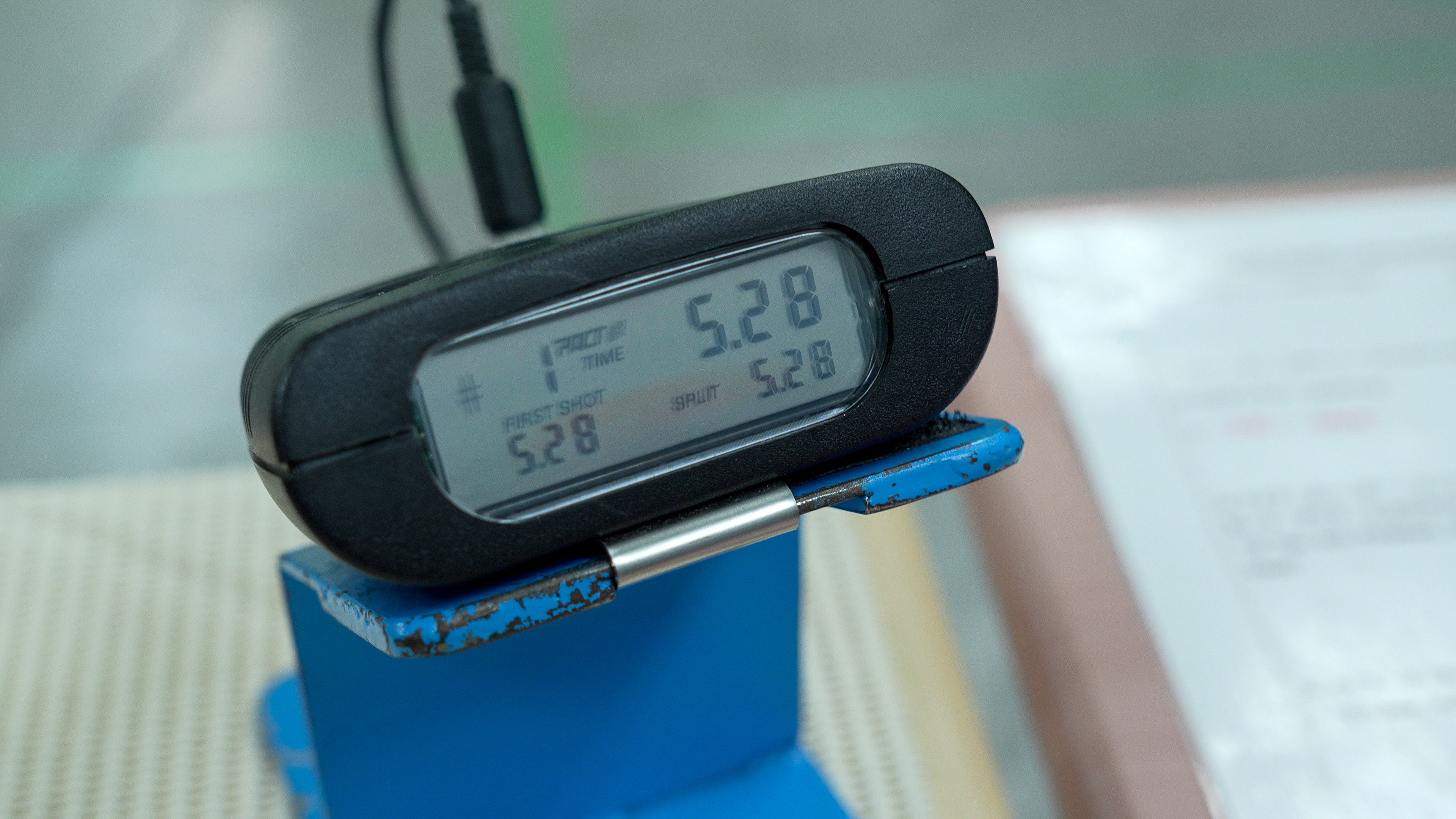 初回のタイムは16.23秒。目標は5秒台!安定して素早く撃つコツを中沢さんに丁寧に教えてもらい、少しずつタイムを縮めていきます。8秒〜10秒台というタイムを安定して達成できるようになっていきます。しかし目標まではまだまだ程遠いタイム。
