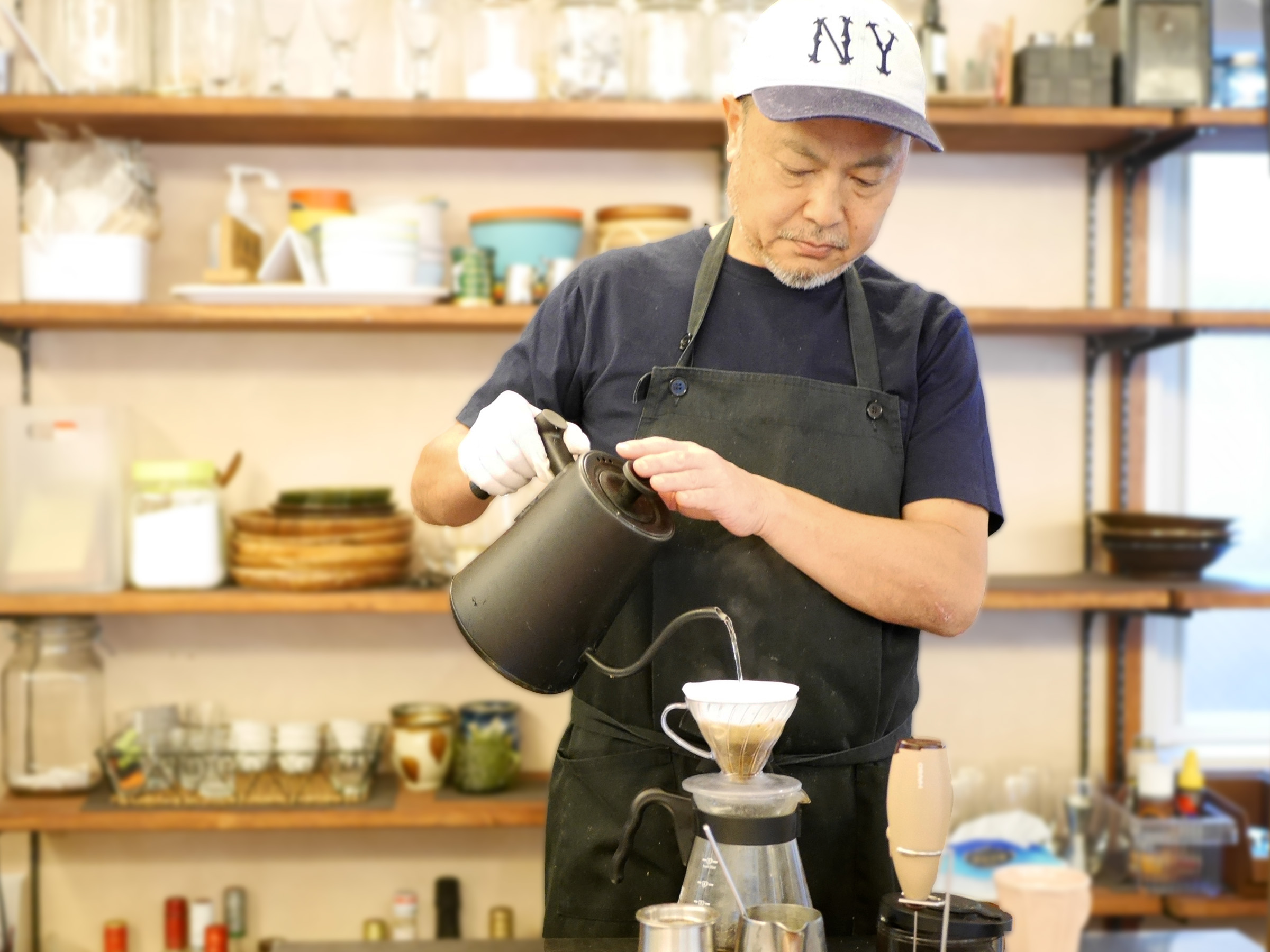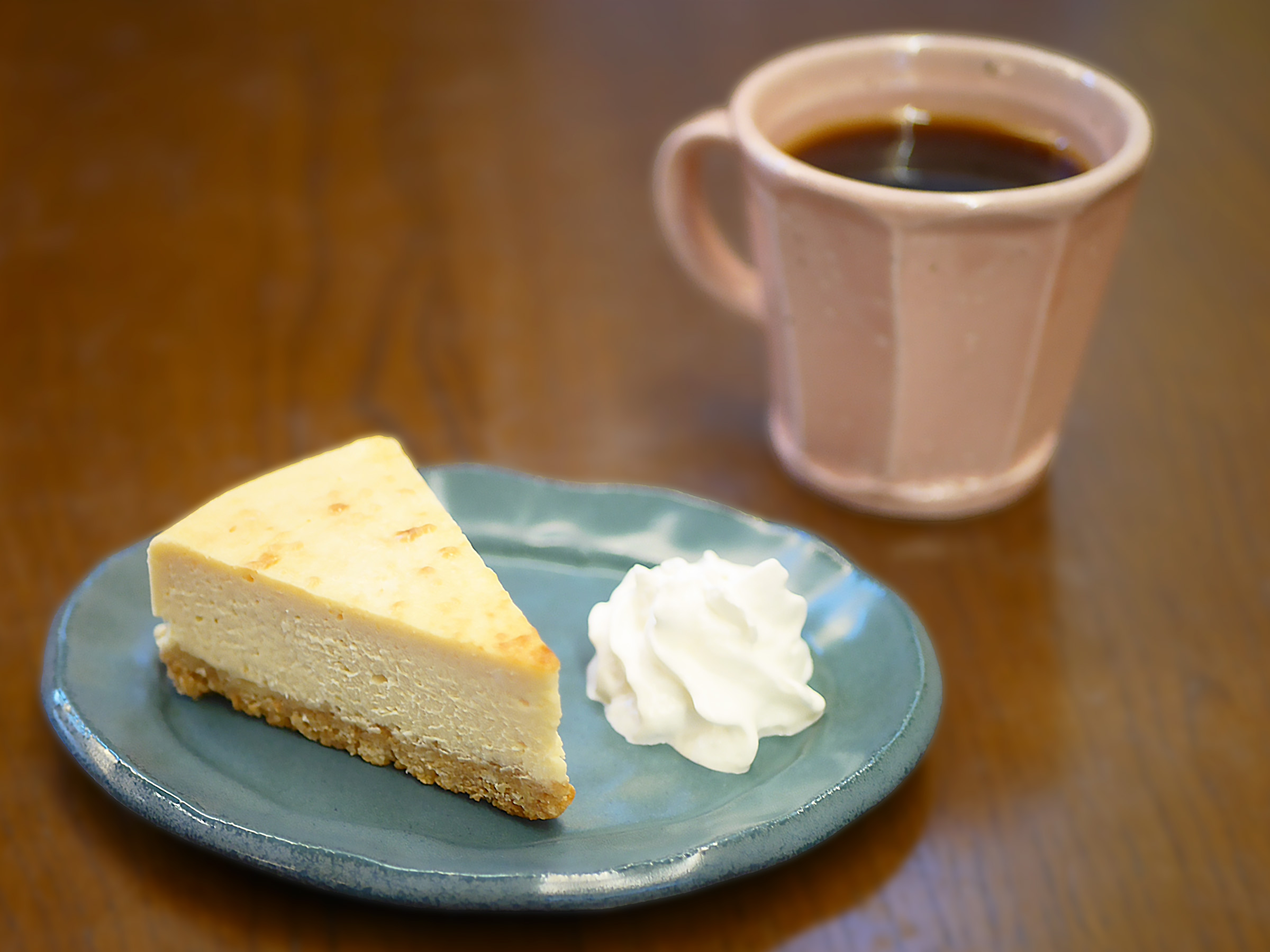 合わせるのは、地元・上町の「宍戸珈琲」の豆を使い、店主がハンドドリップで丁寧に淹れる一杯。爽やかな酸味と深いコクが、チーズケーキのやさしい味わいを引き立てます。