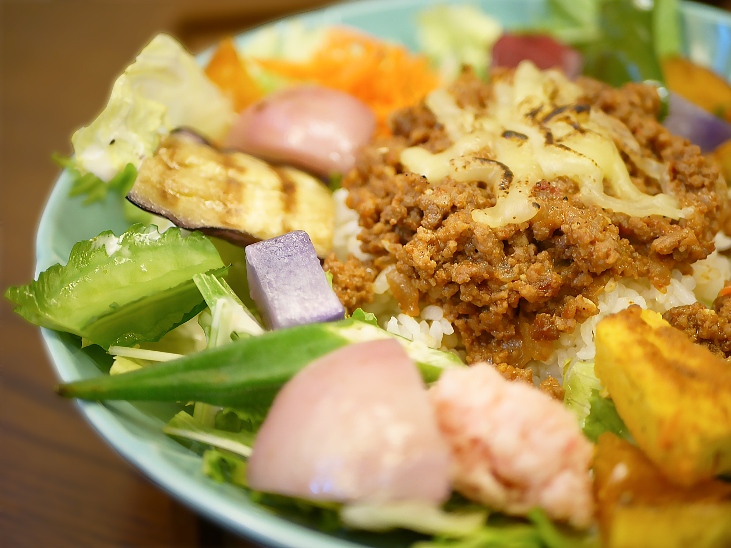 お肉を使わない「ベジごはん」が看板メニューの一方で、日替わりの気まぐれメニュー「タコライス」は、“お肉も野菜も摂りたい”というファンに人気の一品です。
