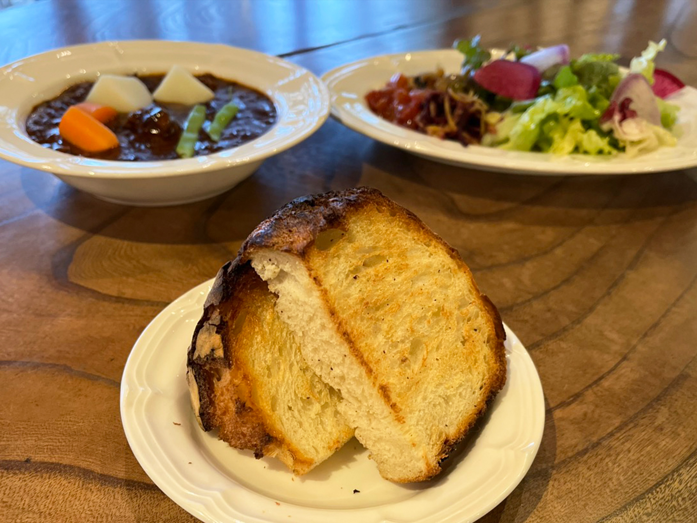 ランチメニューにこの薪窯カンパーニュが添えられています。