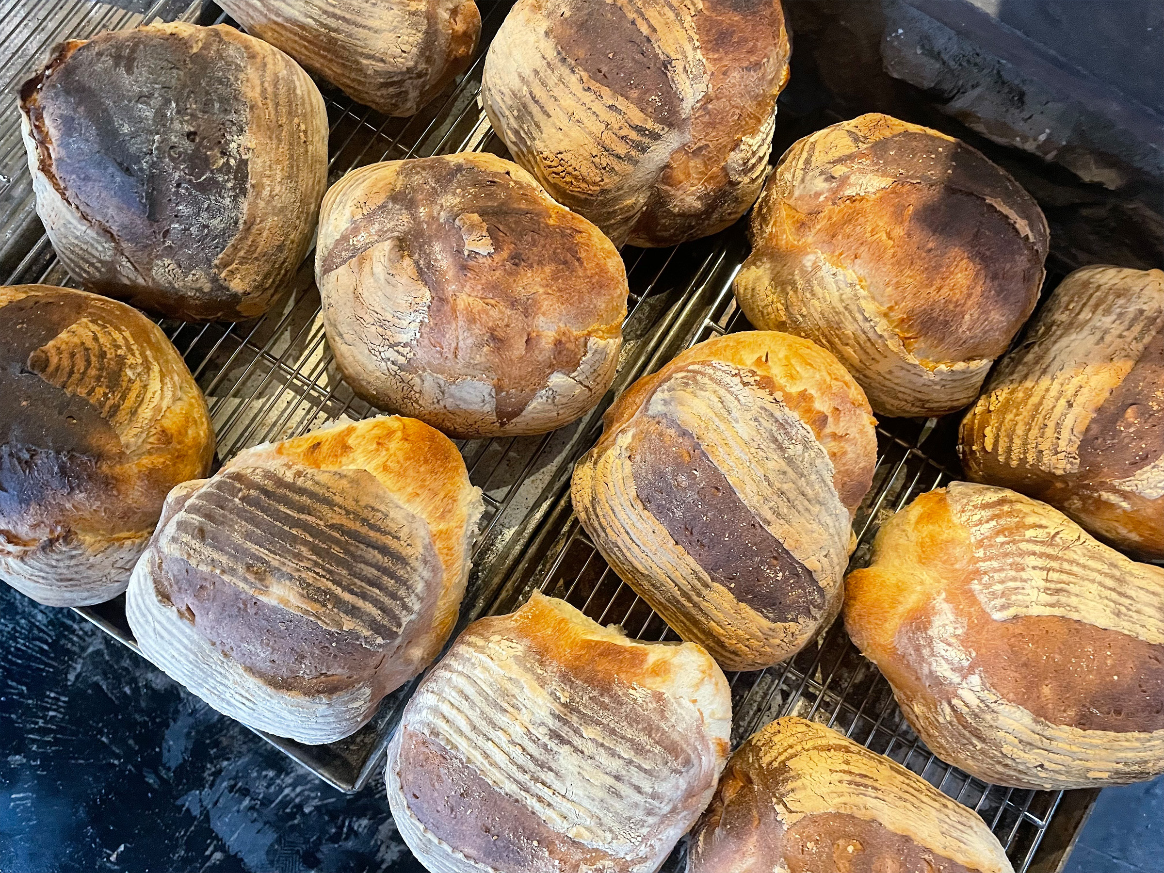 薪窯の高温輻射熱を活かし、400℃にも達する窯内で焼き上げることで、外側は香ばしく、中はもっちり。手間がかかっても、薪窯はカンパーニュの美味しさを引き出すために必要だと言います。