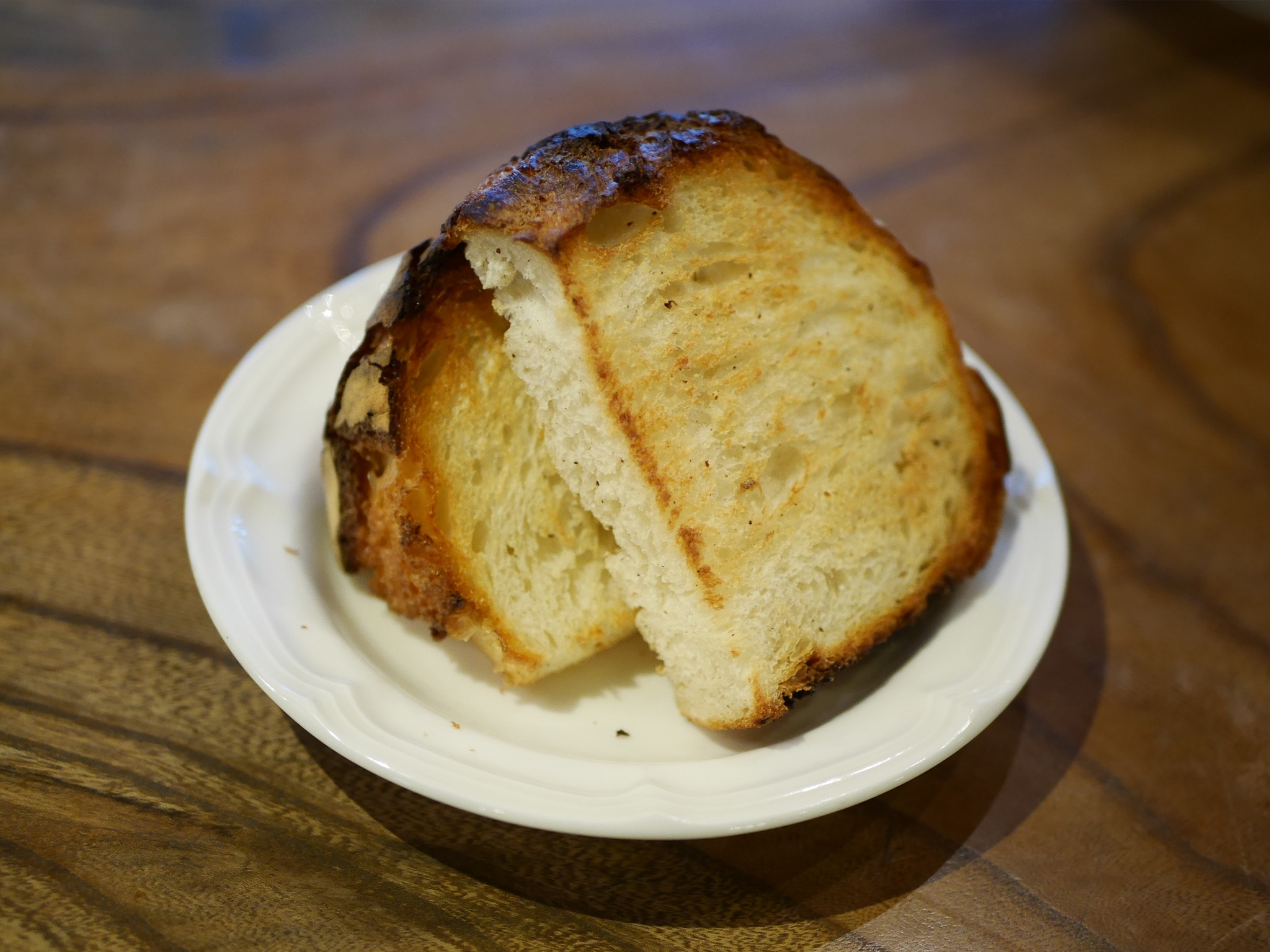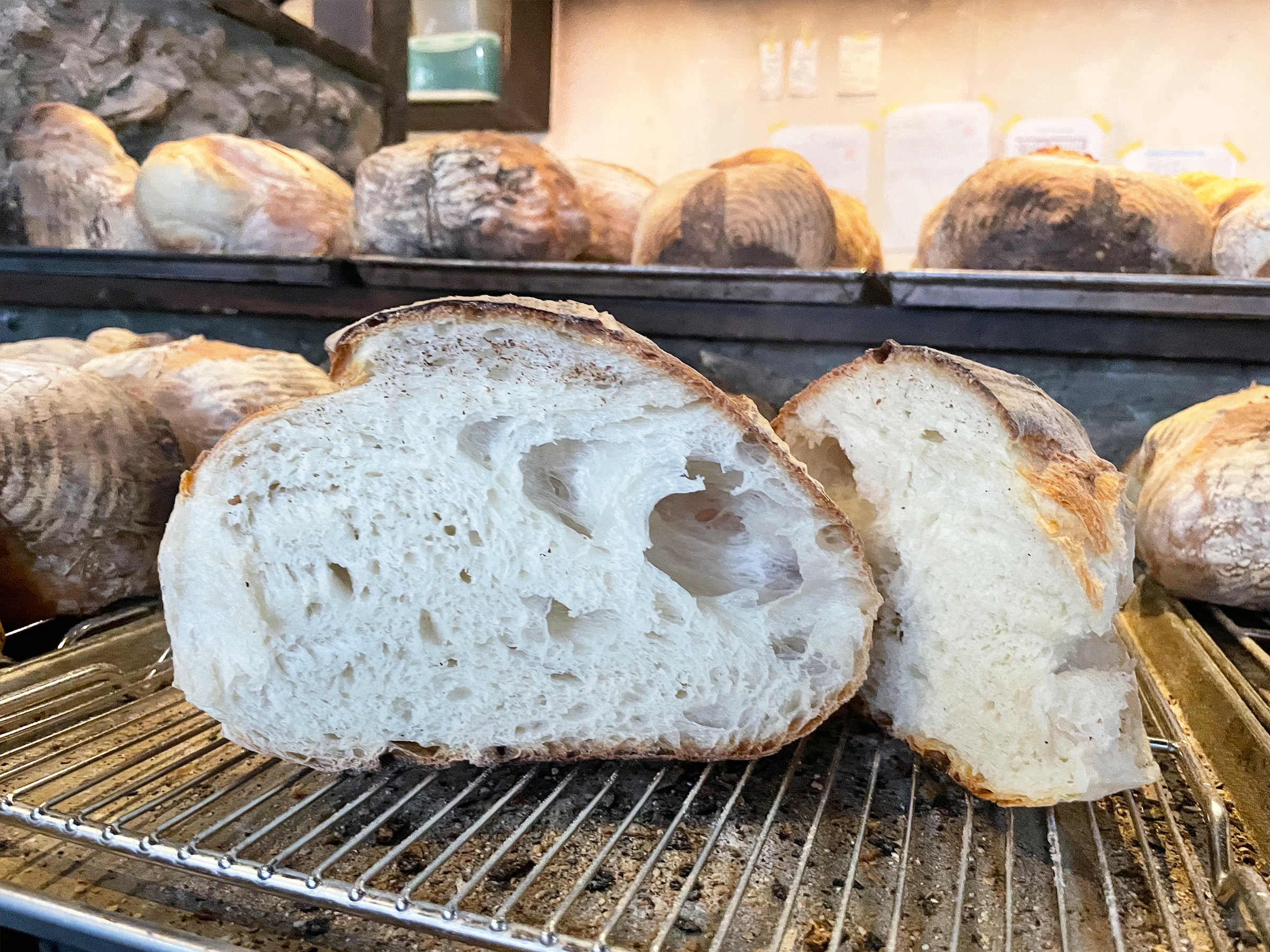 香ばしくパリッとした外側のクラストと、もっちりとした内側のコントラストが絶妙。噛むほどに小麦の旨みが広がり、深い味わいを楽しめます。
