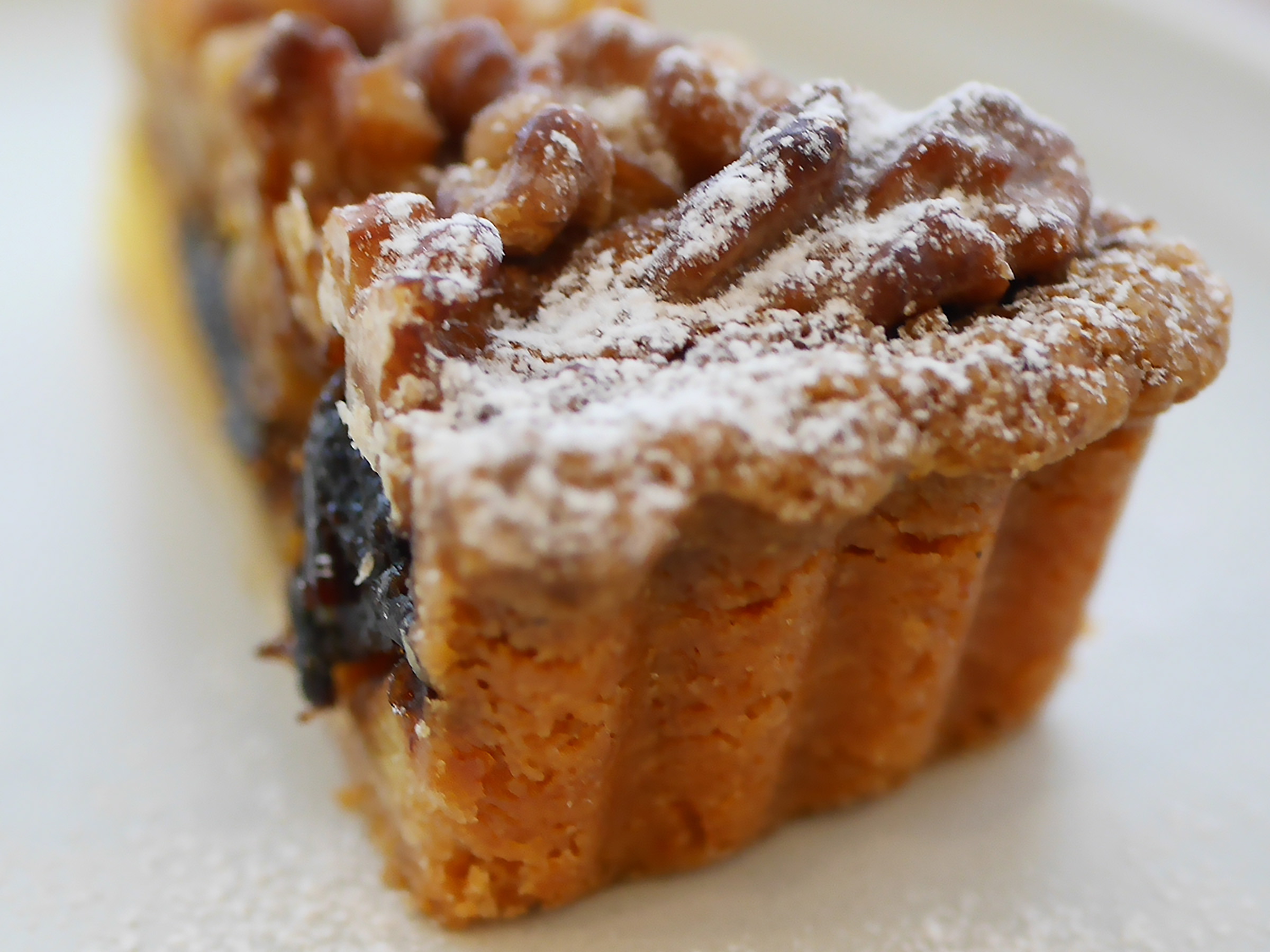 ザクザク食感の生地にプラムのしっとりした酸味と甘み、香ばしいくるみのコントラストが広がり、ひと口で美味しさの余韻に包まれます。