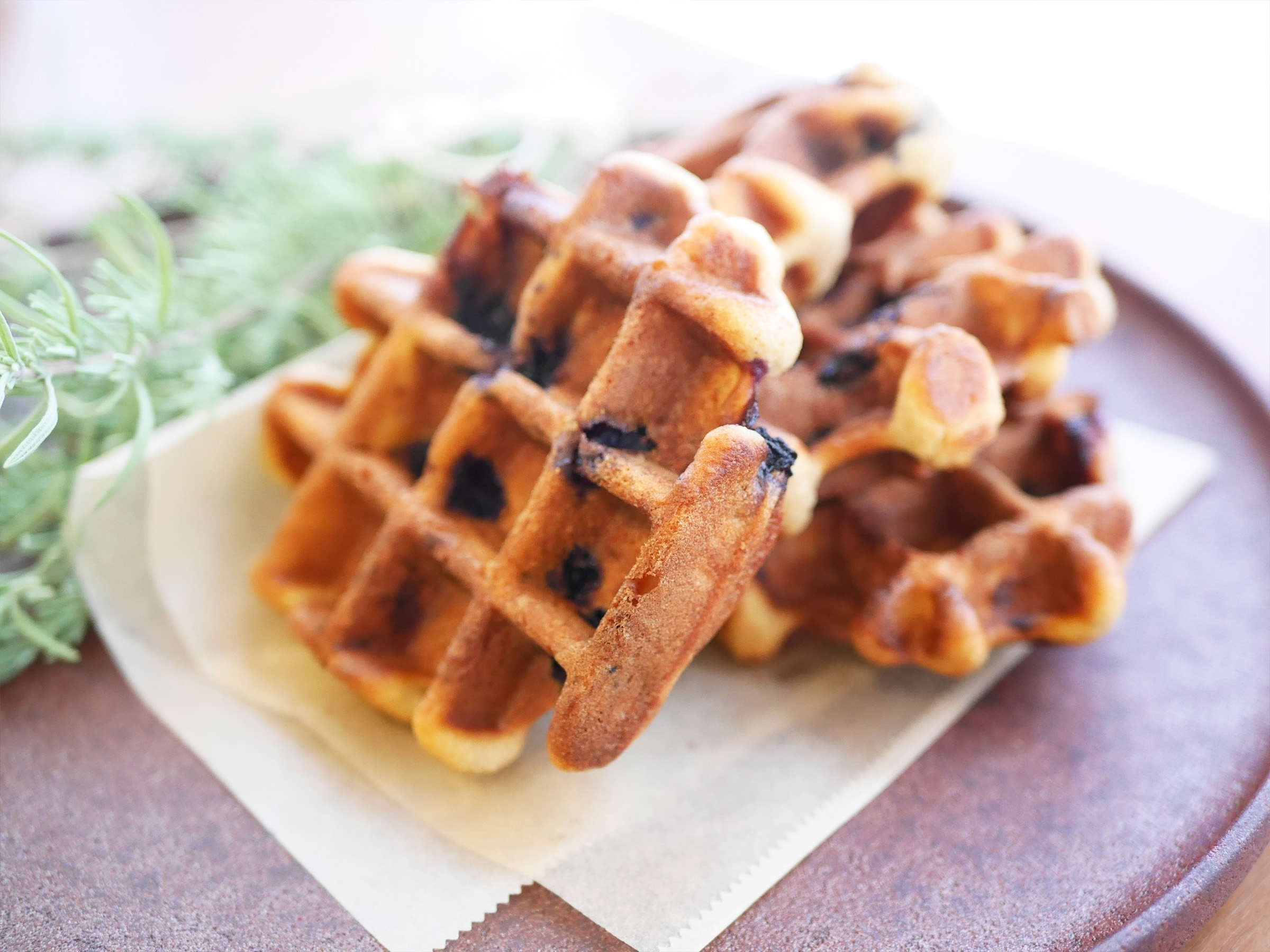 新メニューの「自家製リコッタチーズとブルーベリーのワッフル(280円/枚税込)」も人気。外はサクッと、中はふんわり軽やかで、ベルギーワッフルよりも軽い印象です。