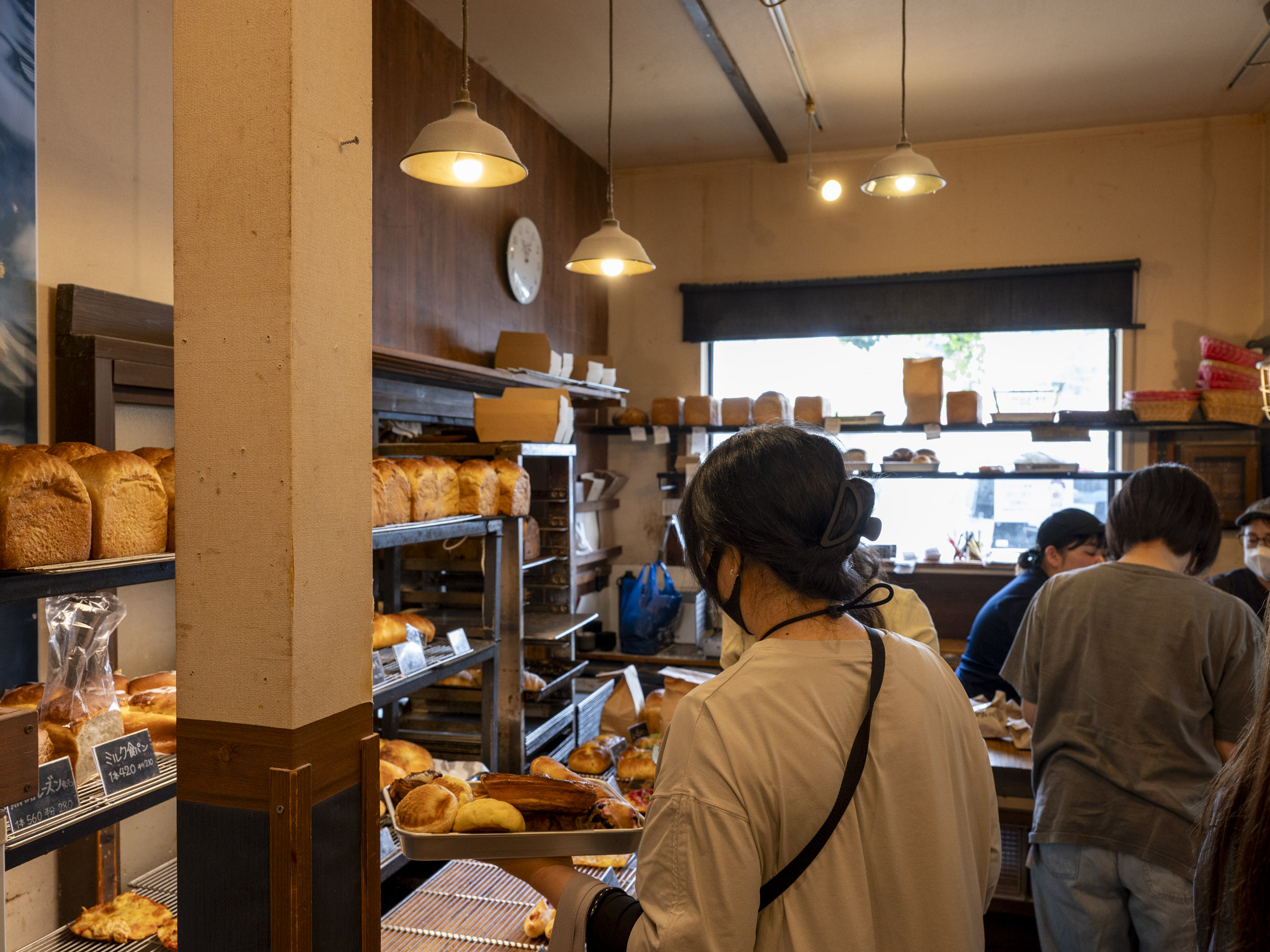 店内に入ると所狭しと並んだパンたち。昼前ぐらいに伺うと、次々とパンが焼かれ、並んだそばから飛ぶように売れていきます。