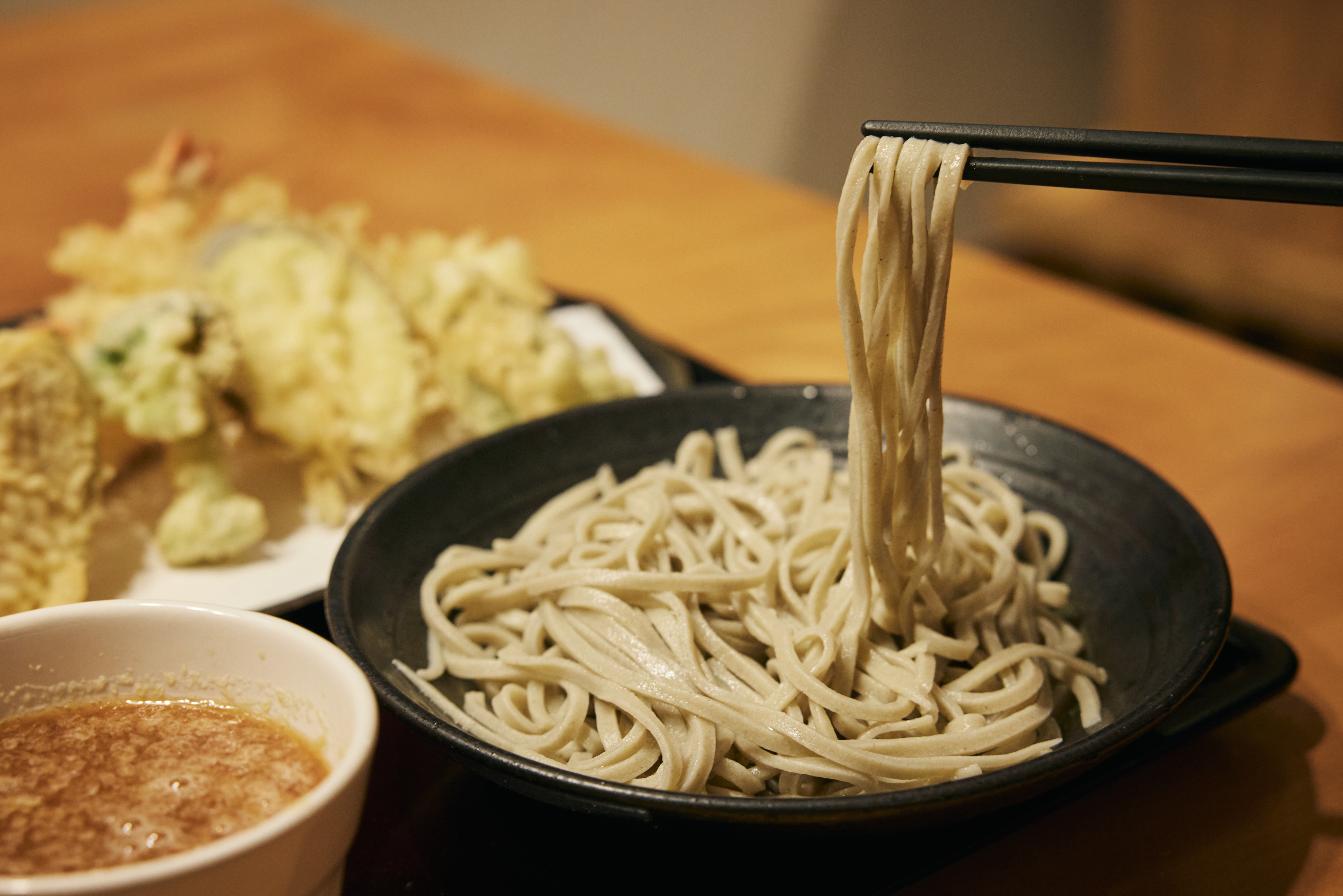 そばつゆはカツオ、サバ、昆布でとった出汁に大根おろしと絞り汁をたっぷりと。森本さんに教わったように勢いよく啜ると、蕎麦の香りが鼻に抜け、同時に大根おろしのさっぱりとした甘みが広がります。