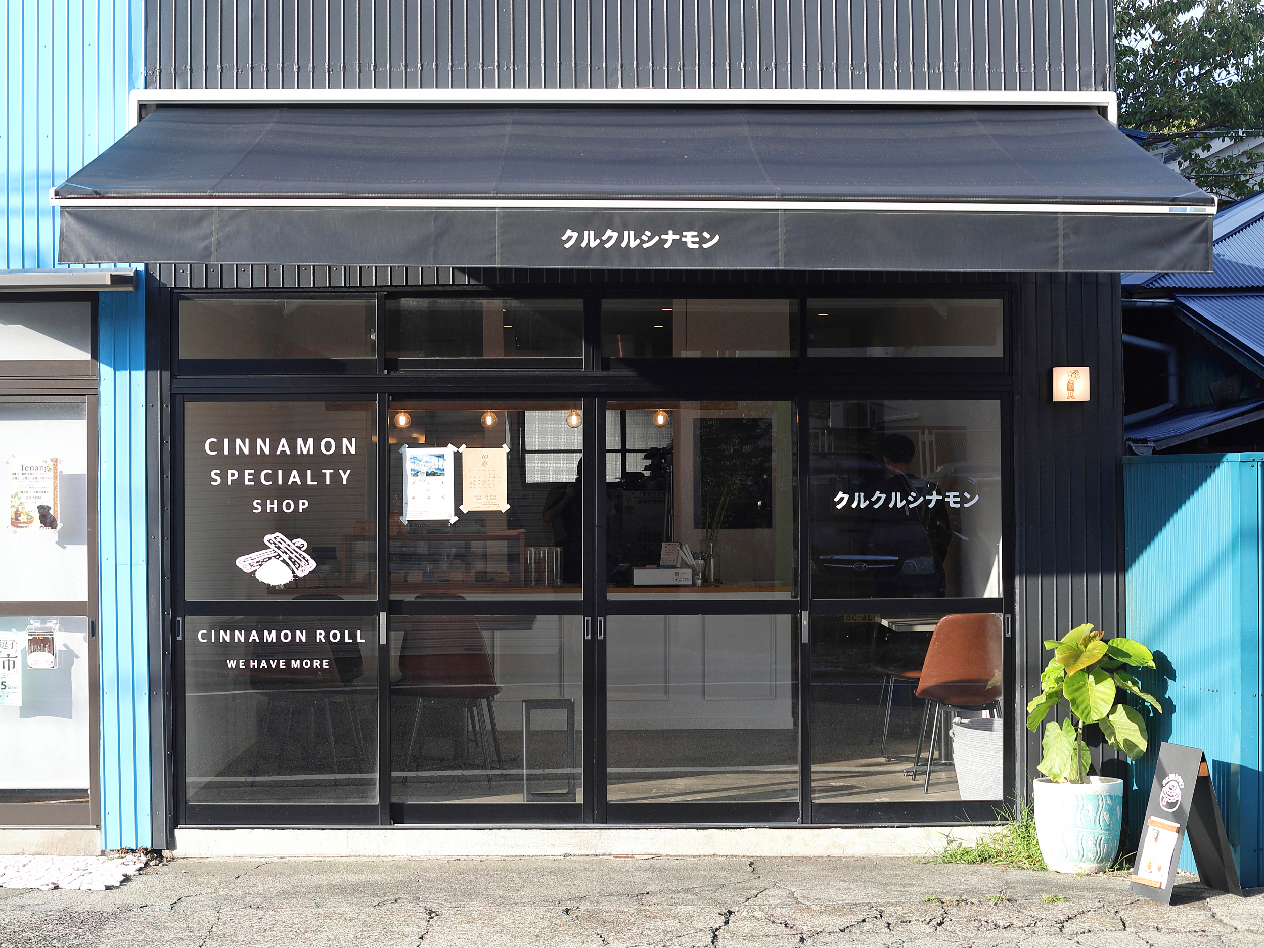 「クルクルシナモン」はJR東逗子駅からほど近い場所にあるシナモン専門店。黒を基調としたシックな外観が印象的です。