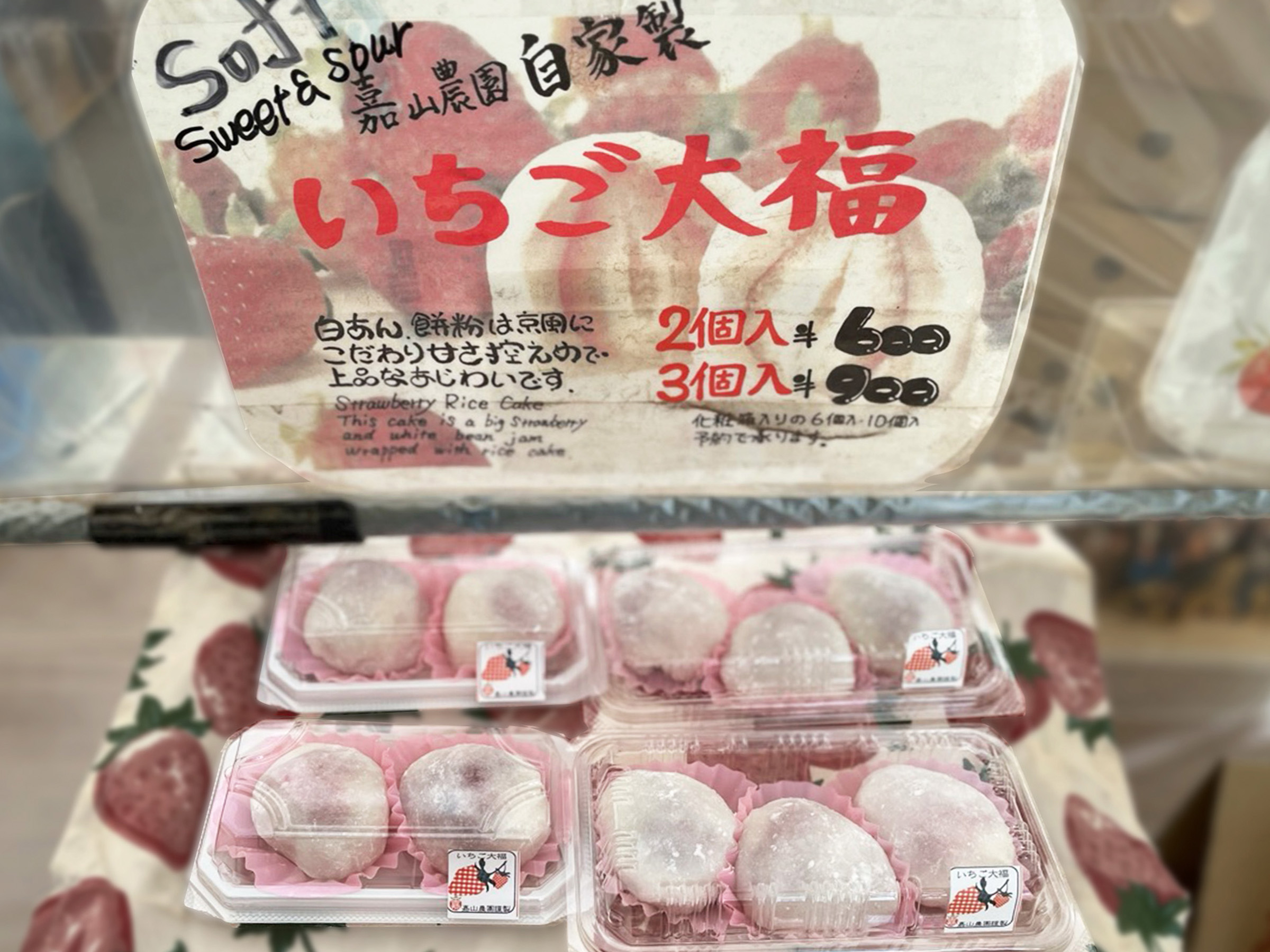 いちご大福(2個入り600円税込/3個入り900円税込)も大人気です。