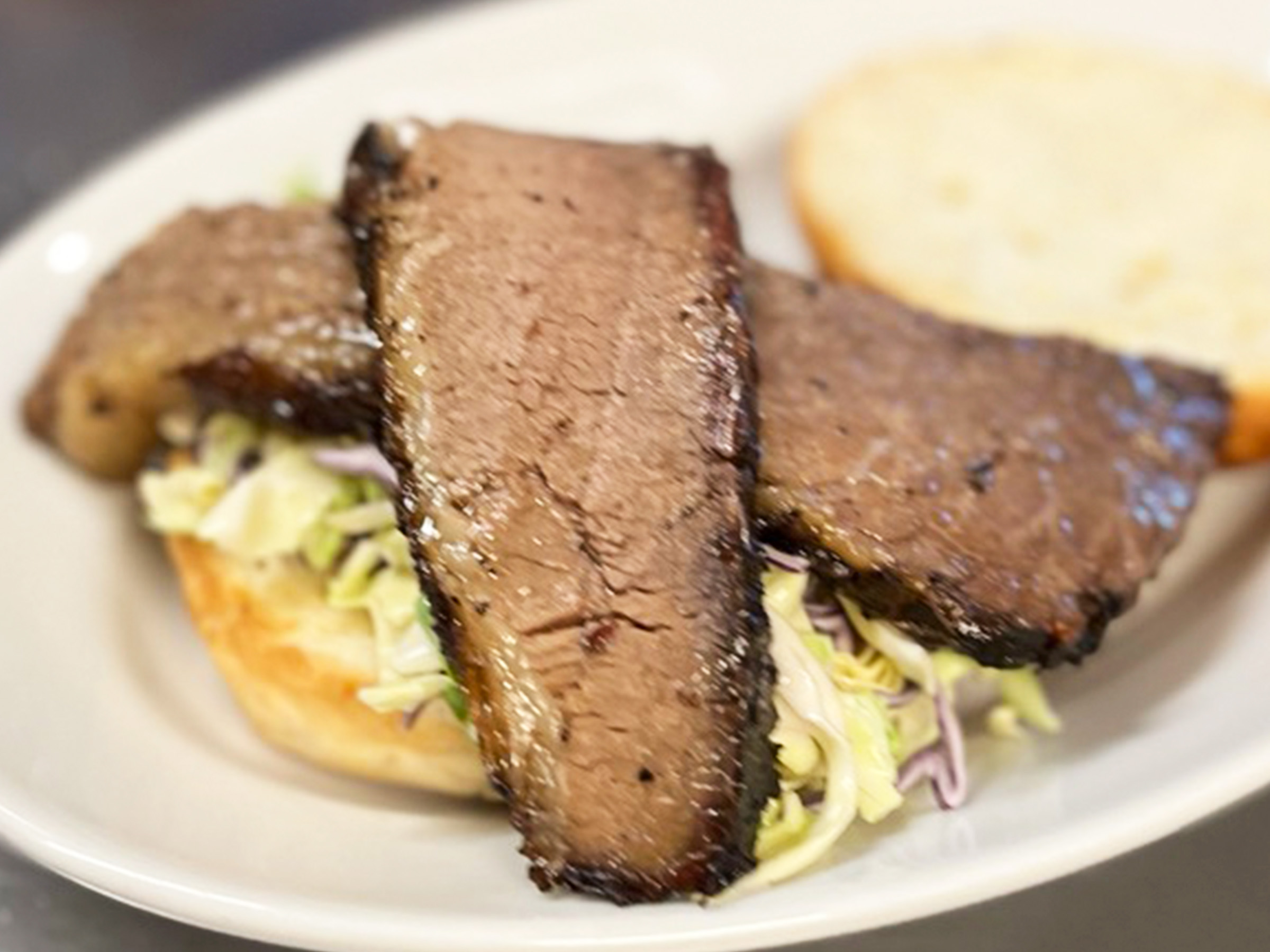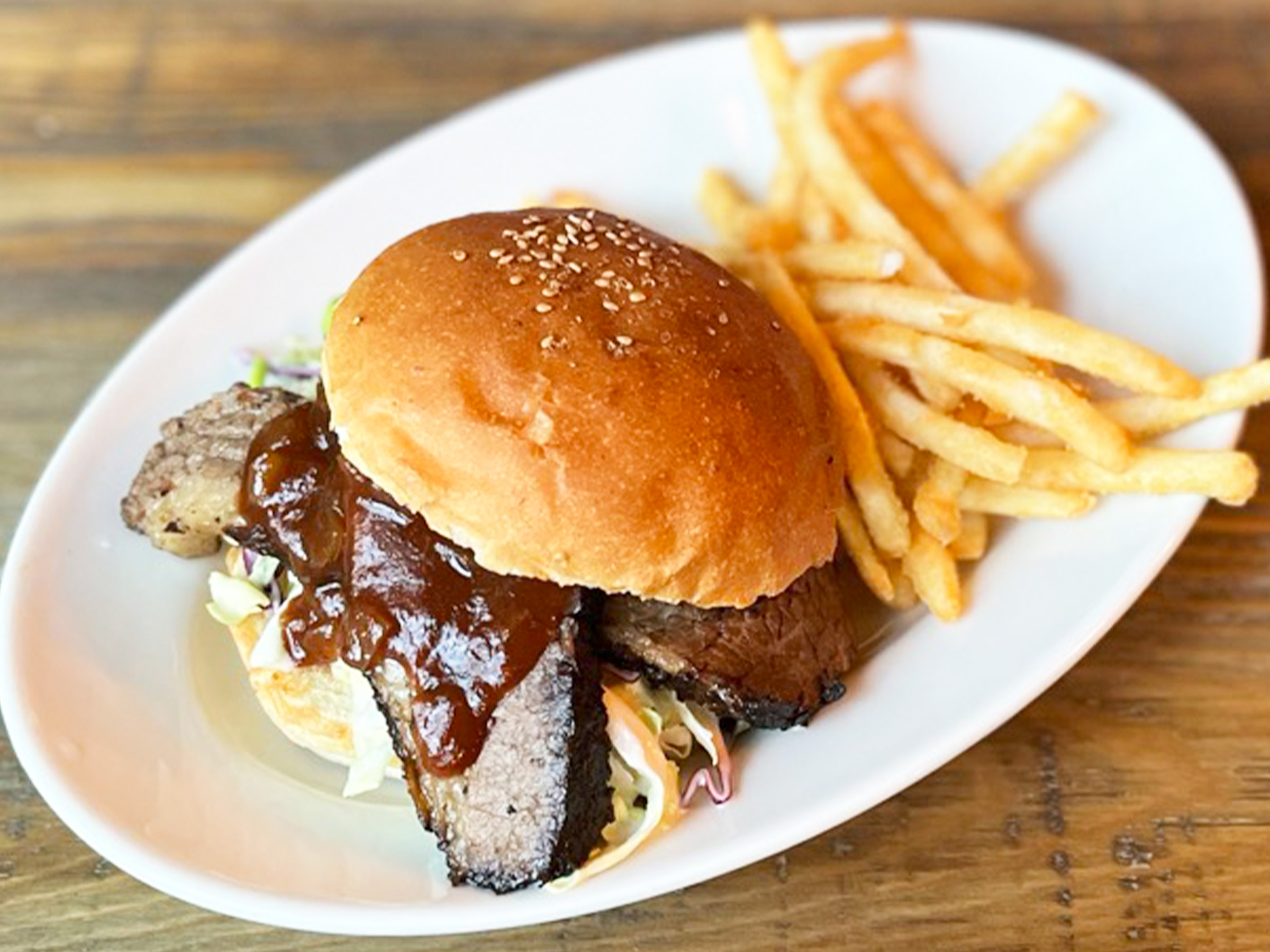 SNSに上げると、外国人からの予約が殺到した「ブリスケットバーガー(3980円税込)」。希少部位の胸部にあたる牛ブリスケットを、薪のスモーカーで14〜16時間かけ低温調理。小沢さんが「秘密の温度」と語る、何度も試作を繰り返し達した熱加減によって、肉の“コラーゲン化”が実現しました。