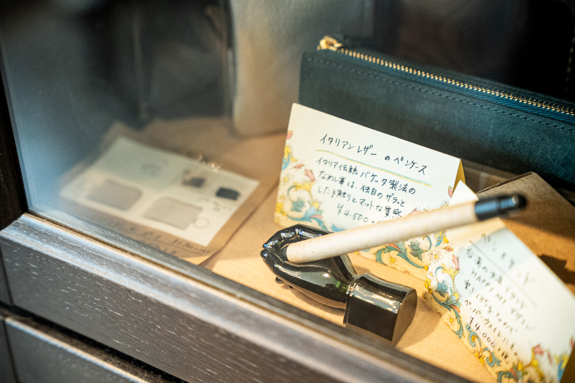 「大きな量販店では数が多すぎて選びきれないことも。うちではそういう大手では取り扱わないような、ちょっと変わったデザインや使いやすくて珍しいものをセレクトしています。長く使ってほしいから、ボールペンやシャーペンの替え芯も販売しています。“道具を育てて楽しむ”というのも大切にしていて、木、皮、真鍮といった使いこむほど味わいの出る素材のアイテムを多く取り揃えています」