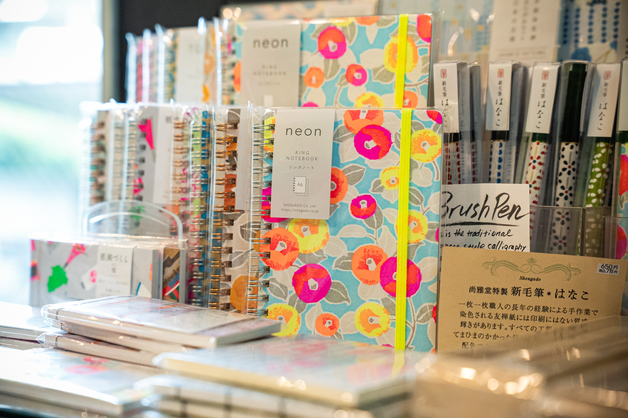 場所柄、外国人観光客の来店も多く、インバウンド客に特に人気なのが友禅紙を使ったアイテム。「一枚一枚手作業で染色される友禅紙を使用した、古典柄とネオンカラーの組み合わせが目を引く筆箱やノートを買われていく方が多いですね」と柴田さん。