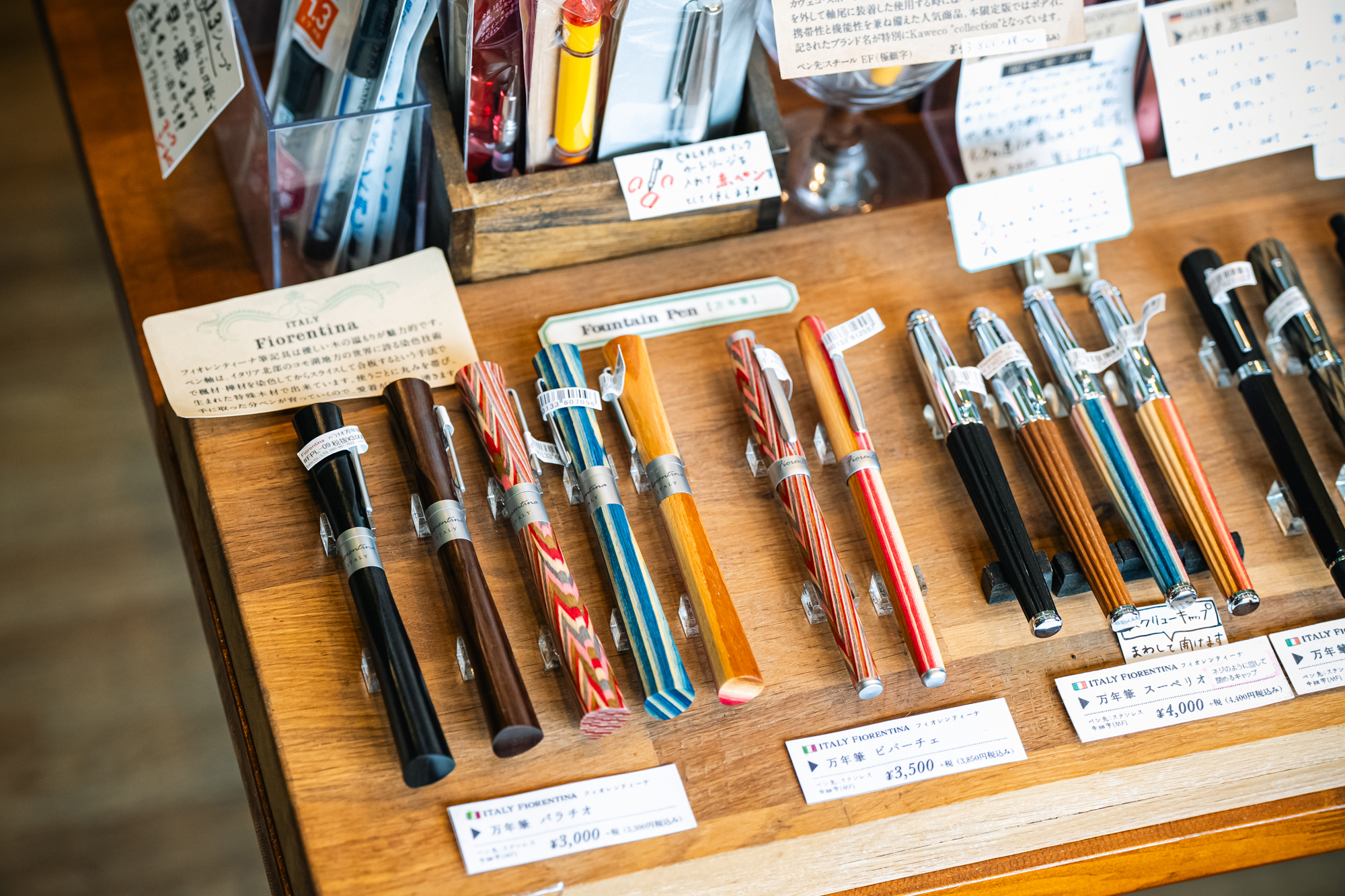 お店の看板にも描かれている万年筆を筆頭に、店内には国内外の筆記具や紙雑貨など素敵なアイテムが空間いっぱいに広がります。