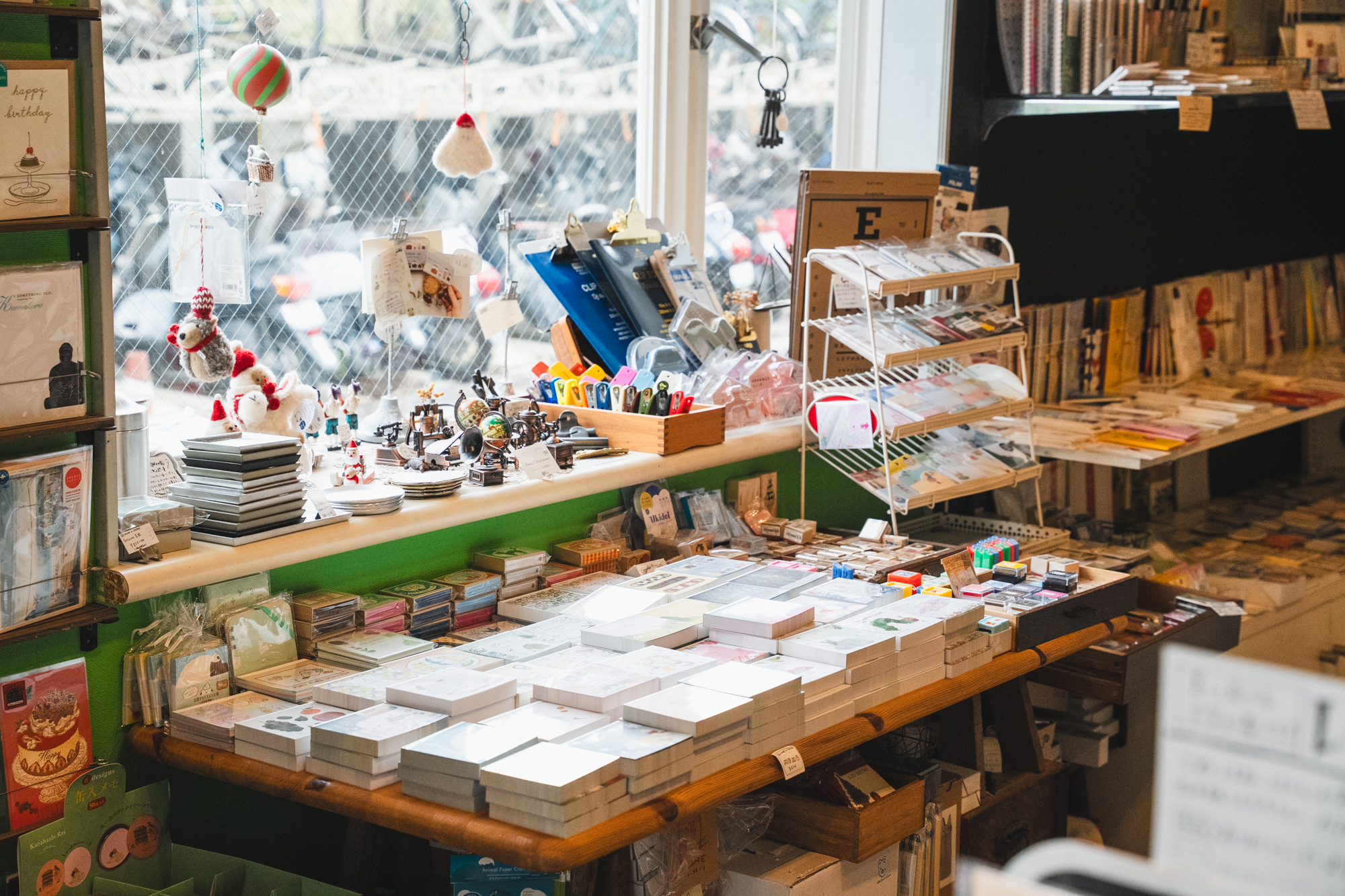 よそでは置いてないような珍しいデザインや種類が豊富で、手書きのポップをじっくり読んでみたり、手に取って書き心地や紙の質感を試したり。思わず時間を忘れてアイテム探しに没頭してしまいます。