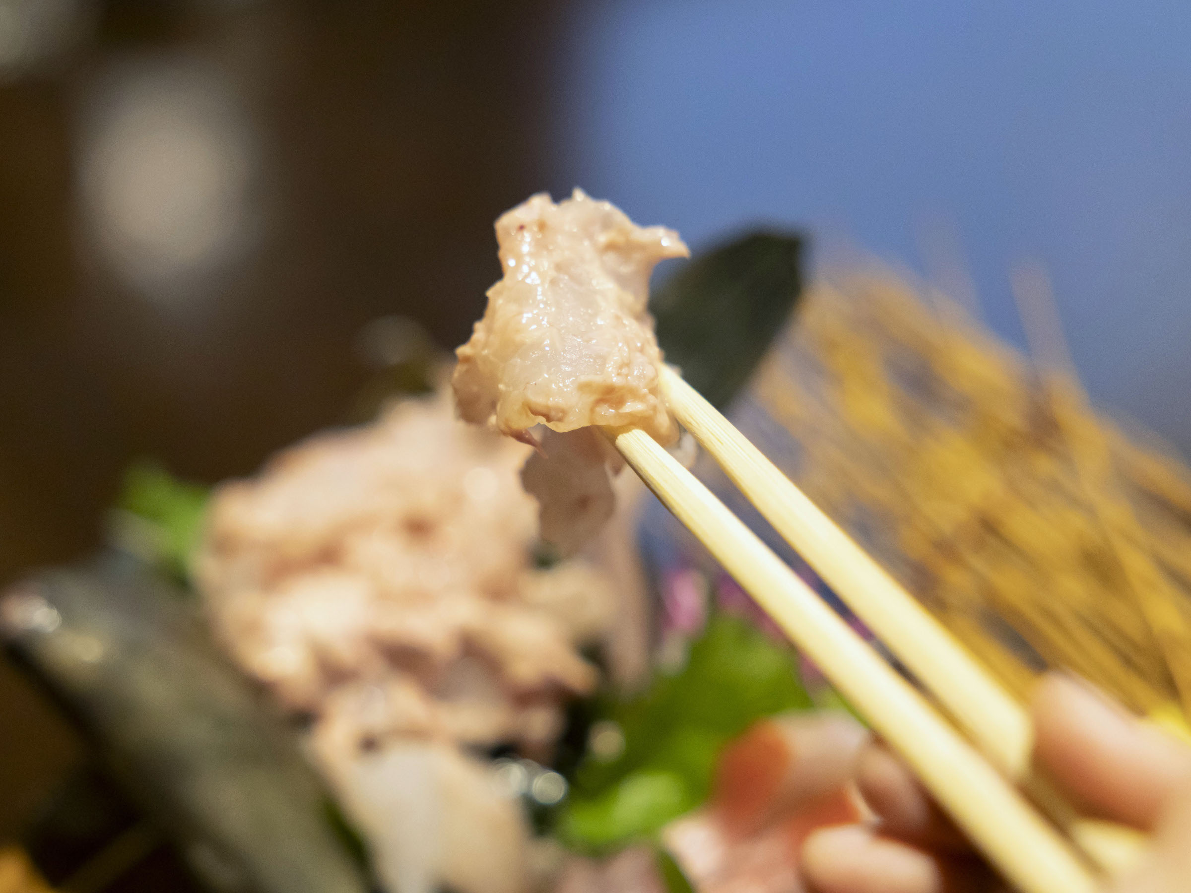 今が旬のカワハギの肝和えは、濃厚でクリーミーな肝の旨みが日本酒を誘います。この希少な魚の特別な味わいを求めて、東京から足を運ぶ常連さんも少なくないのだとか。