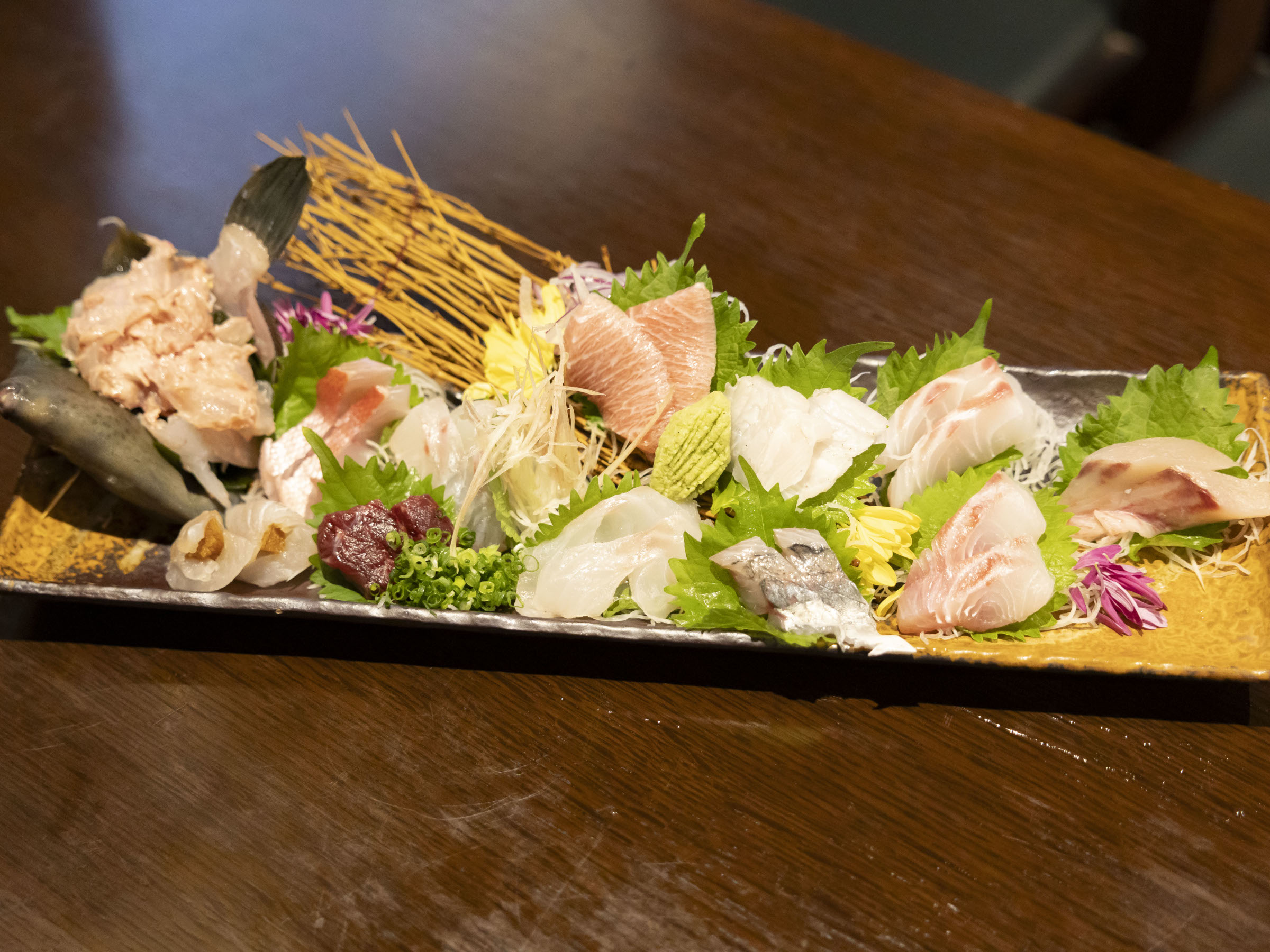 ここは、漁師の父を持つ店主・鈴木誠一さんが毎日開店直前に地元・松輪港で仕入れてきた新鮮な魚をいただくことができると評判のお店。中でも、お客さまの9割が目当てにやってくるという「地魚の造り」(時価)には、三浦の海の恵みと職人の技が詰まっています。