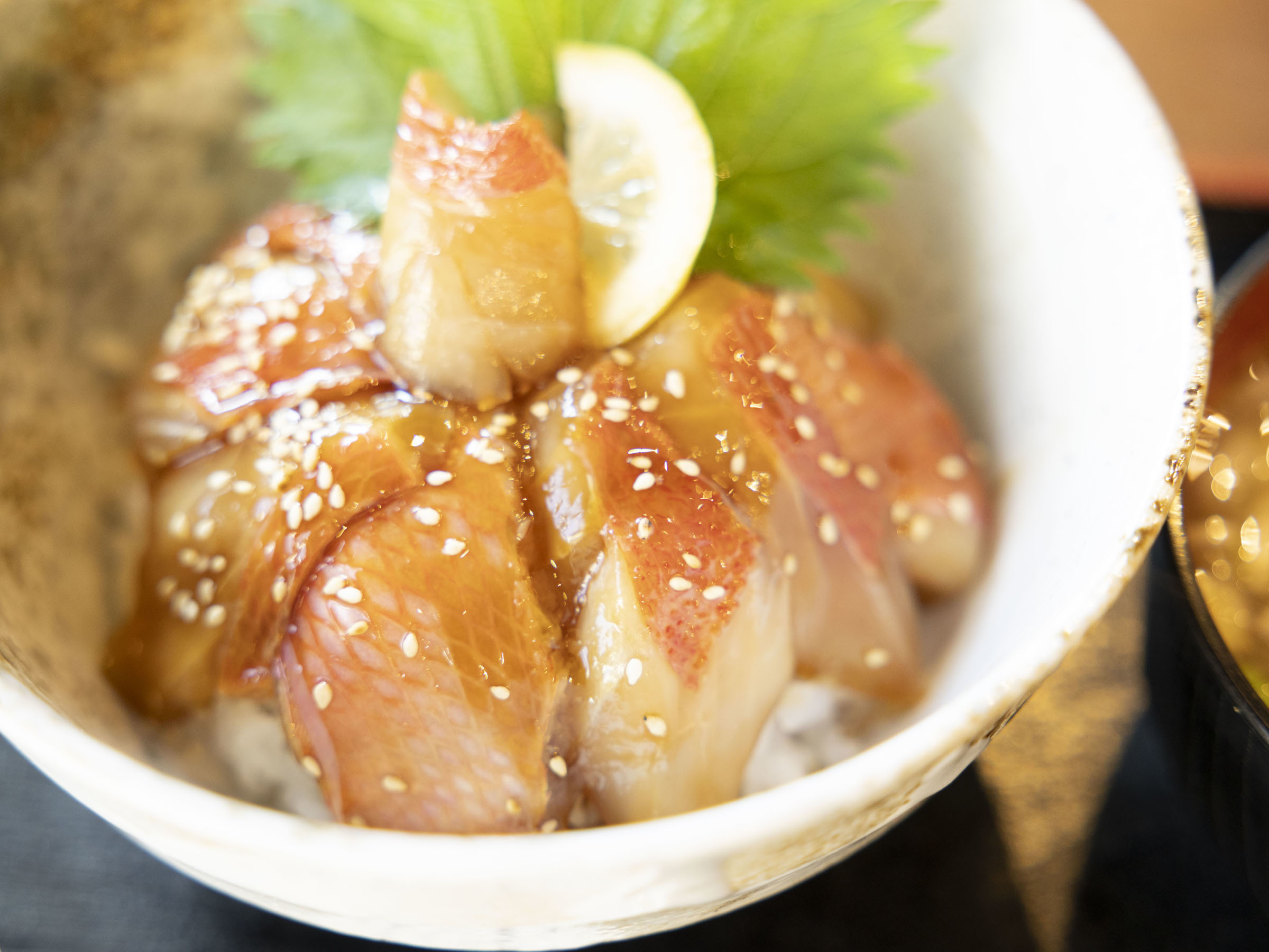 店主を務めるのは2代目の熊木みゆきさん。開業当初から自ら包丁を握り、金目鯛と向き合う中で様々なメニューを考案してきました。そのひとつ、秘伝のタレをまとわせた「金目鯛の漬け丼」(2,000円・税込)は、訪れた方々の舌をとらえて離さないと評判です。