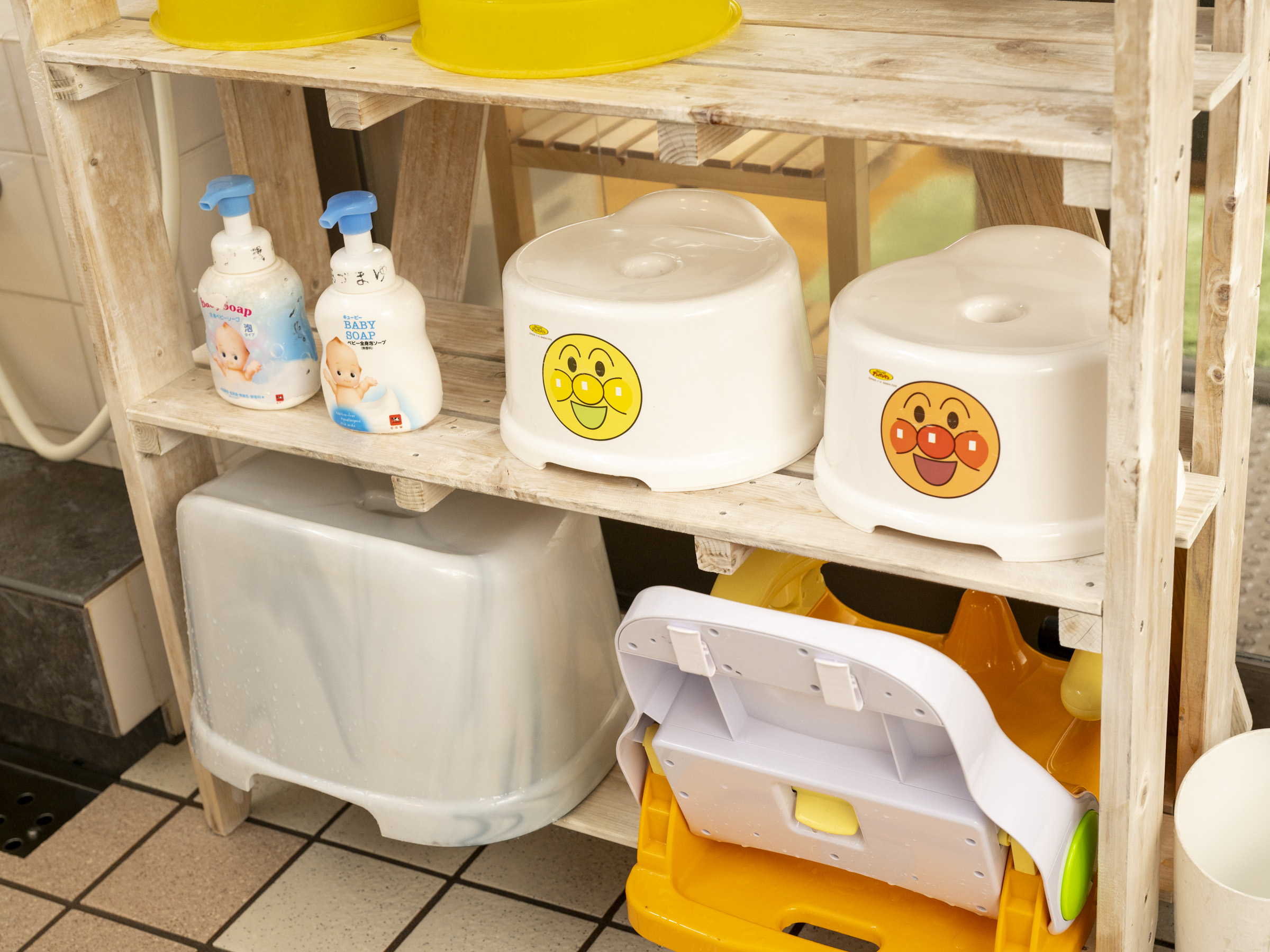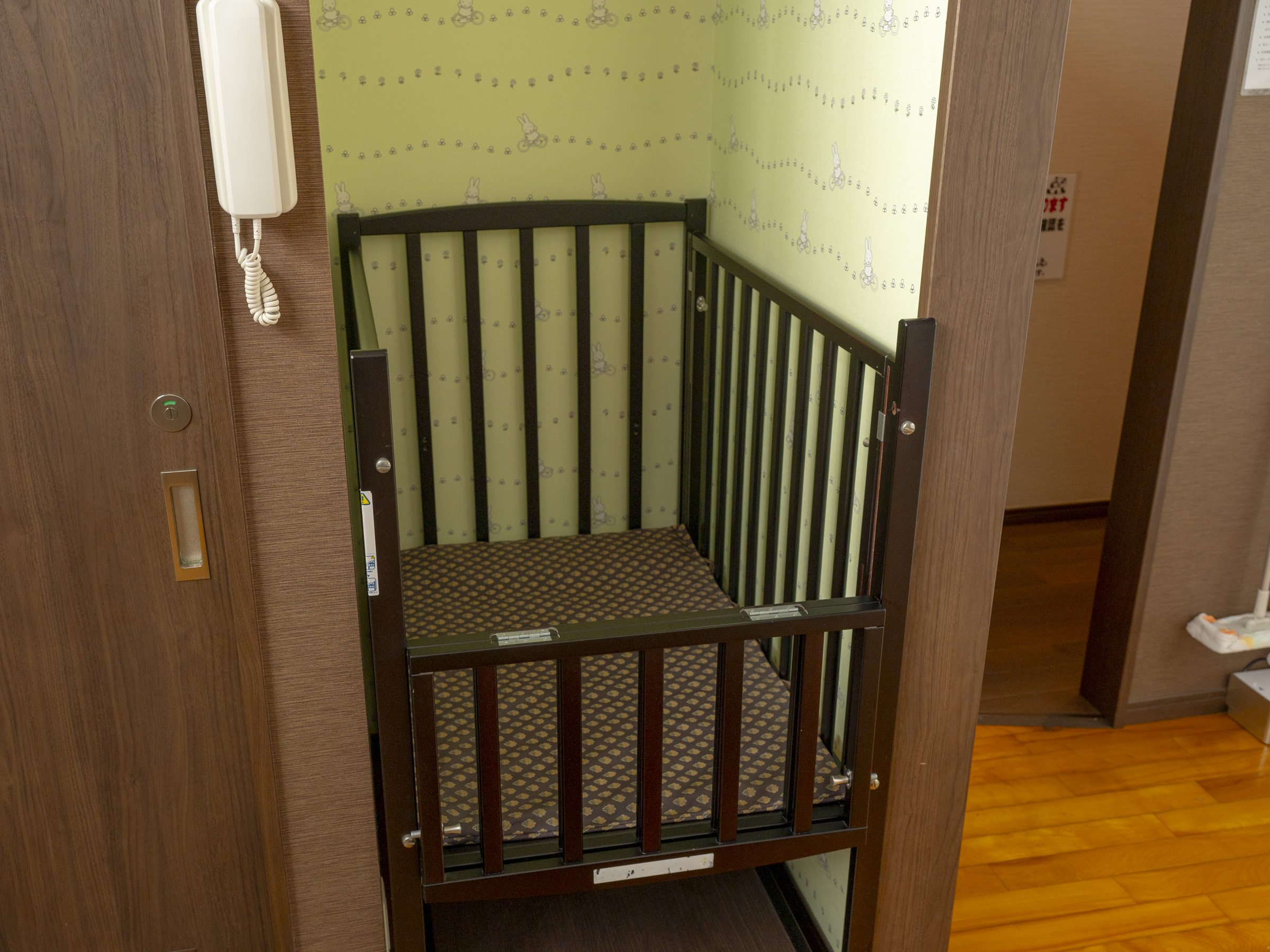 女湯にはベビーベッドを設置。着替え中のママが目を離しても赤ちゃんがどこかへ行ってしまわないよう、柵を上げ下げできる仕様です。