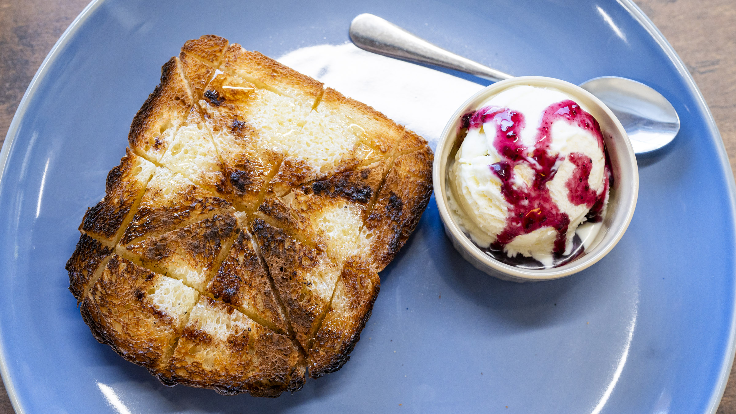セットの「シナモンハニートースト」も登場です。もちっとしたパンの食感に驚きました。名本さんの笑顔も広がります。