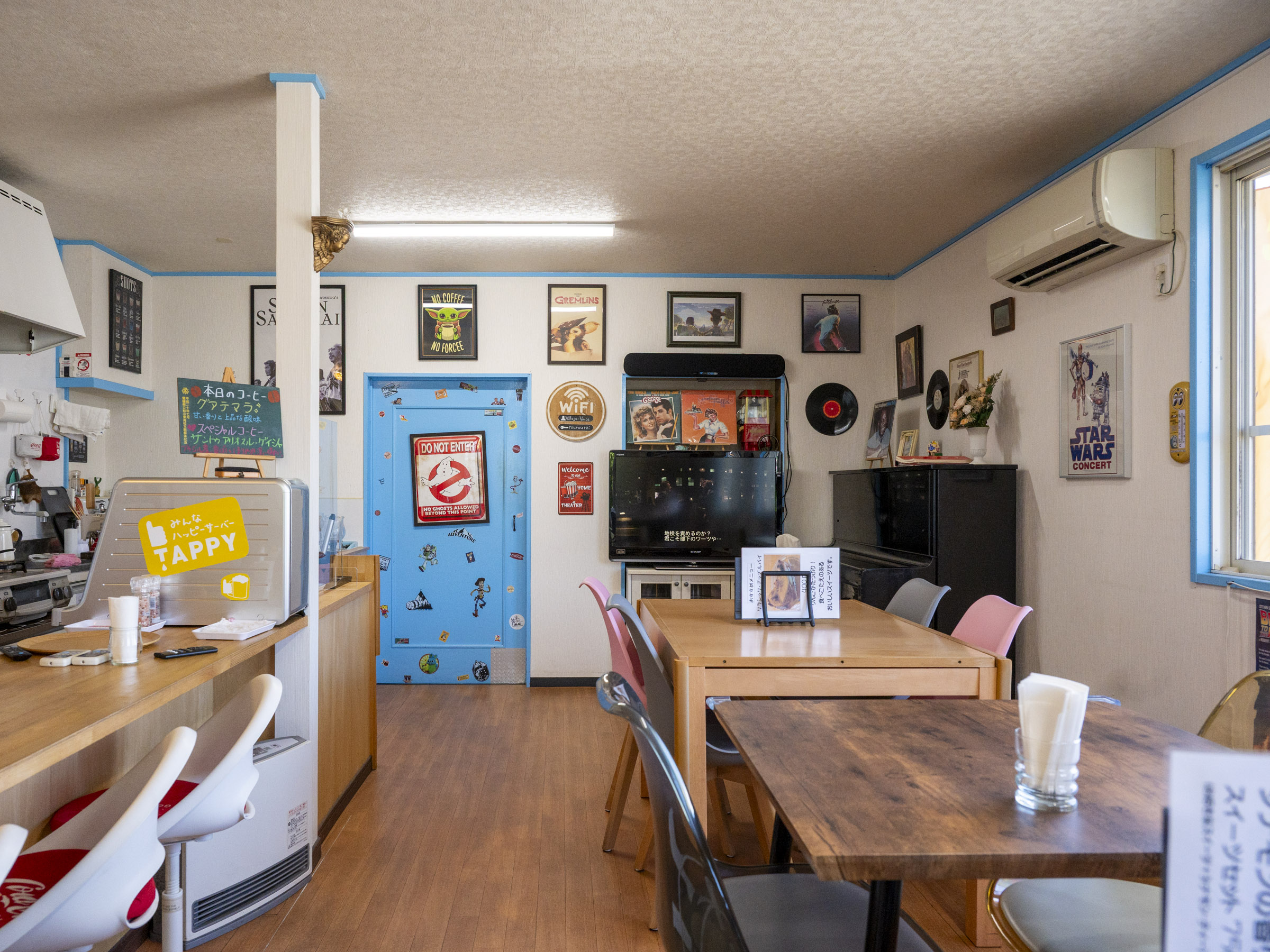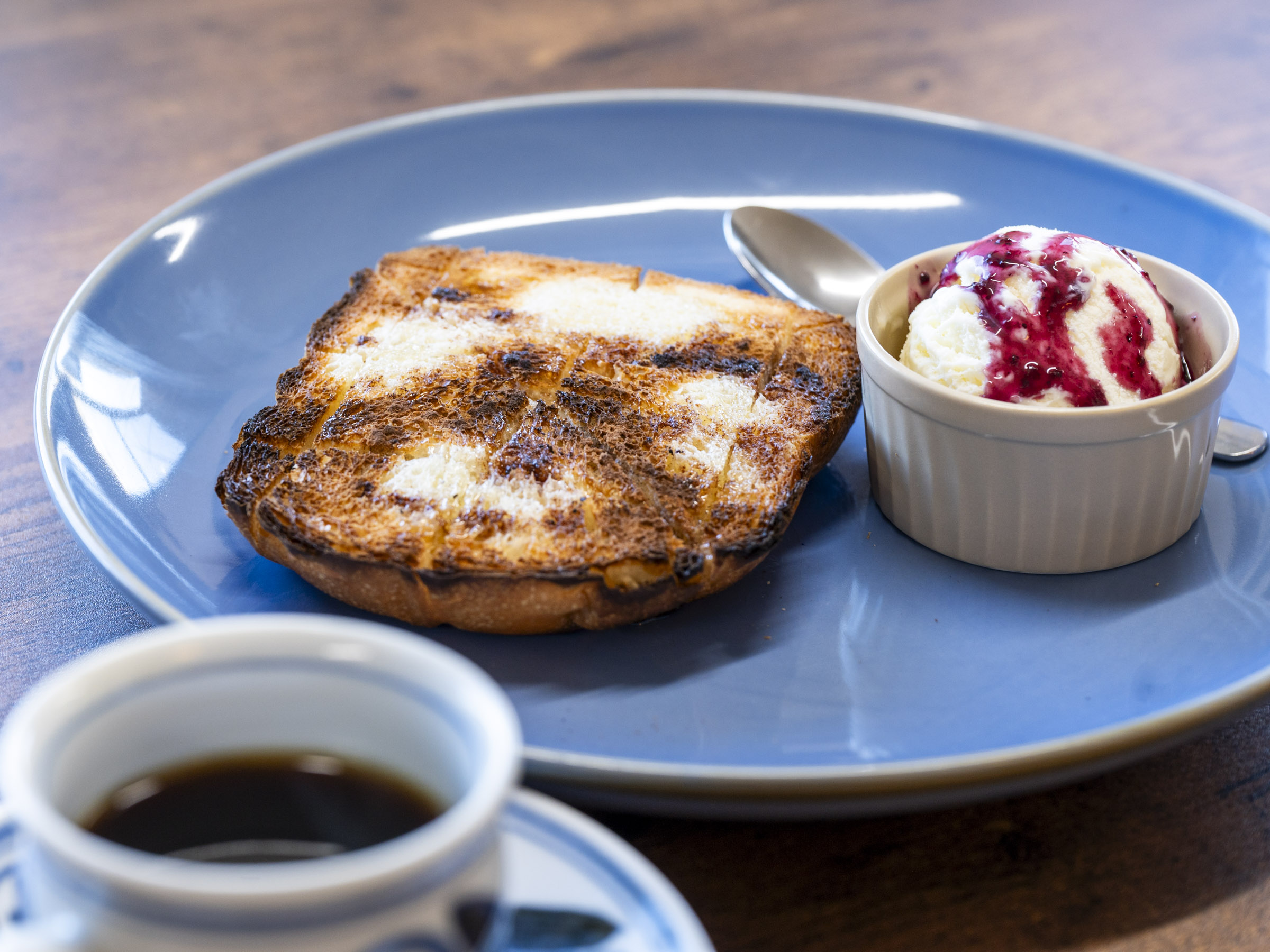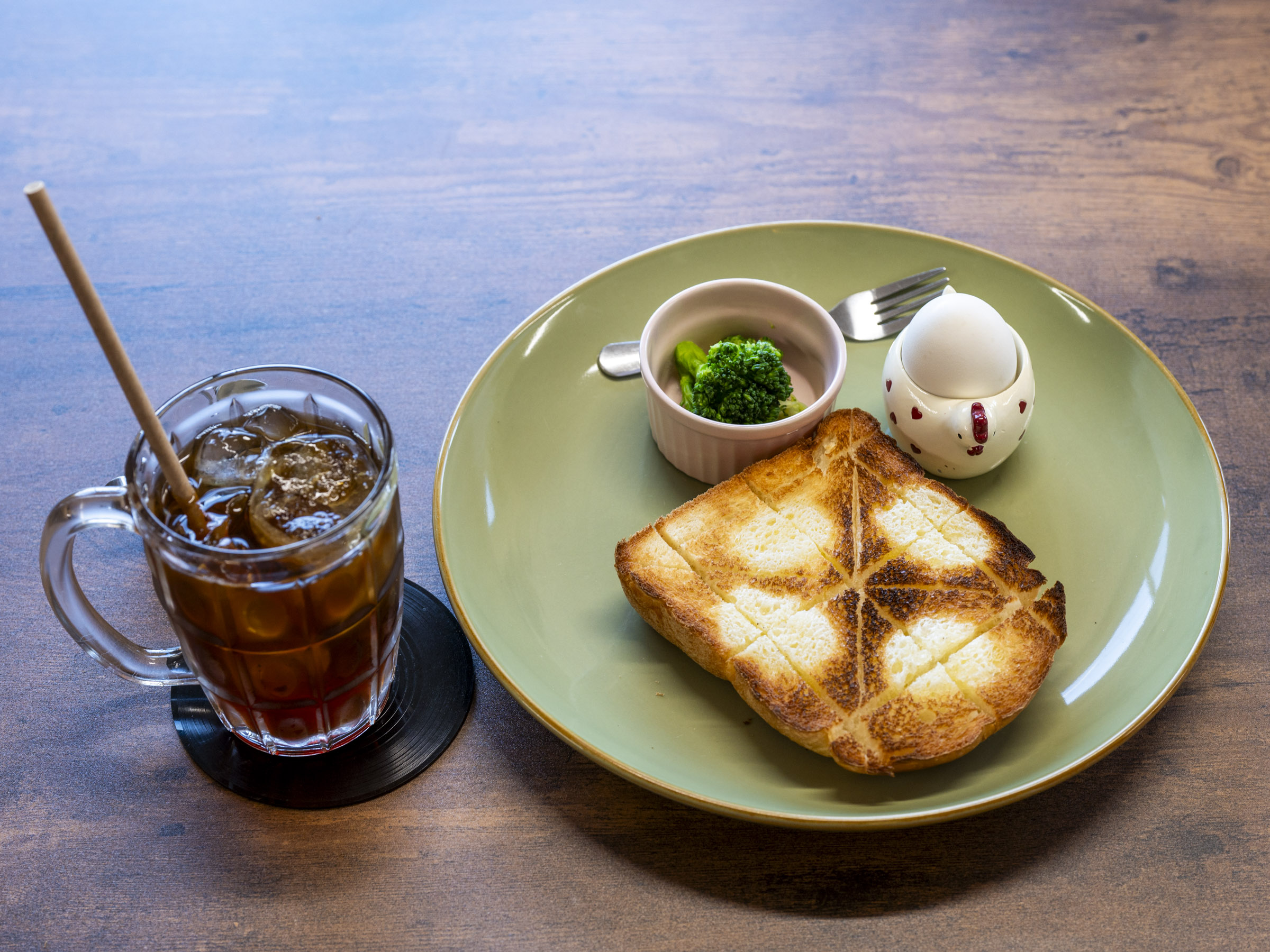 店長の名本祐玖也さんの趣味が詰まった空間で、自家製パンを使ったスイーツとこだわりのサイフォンコーヒーを朝7時からいただくことができます。