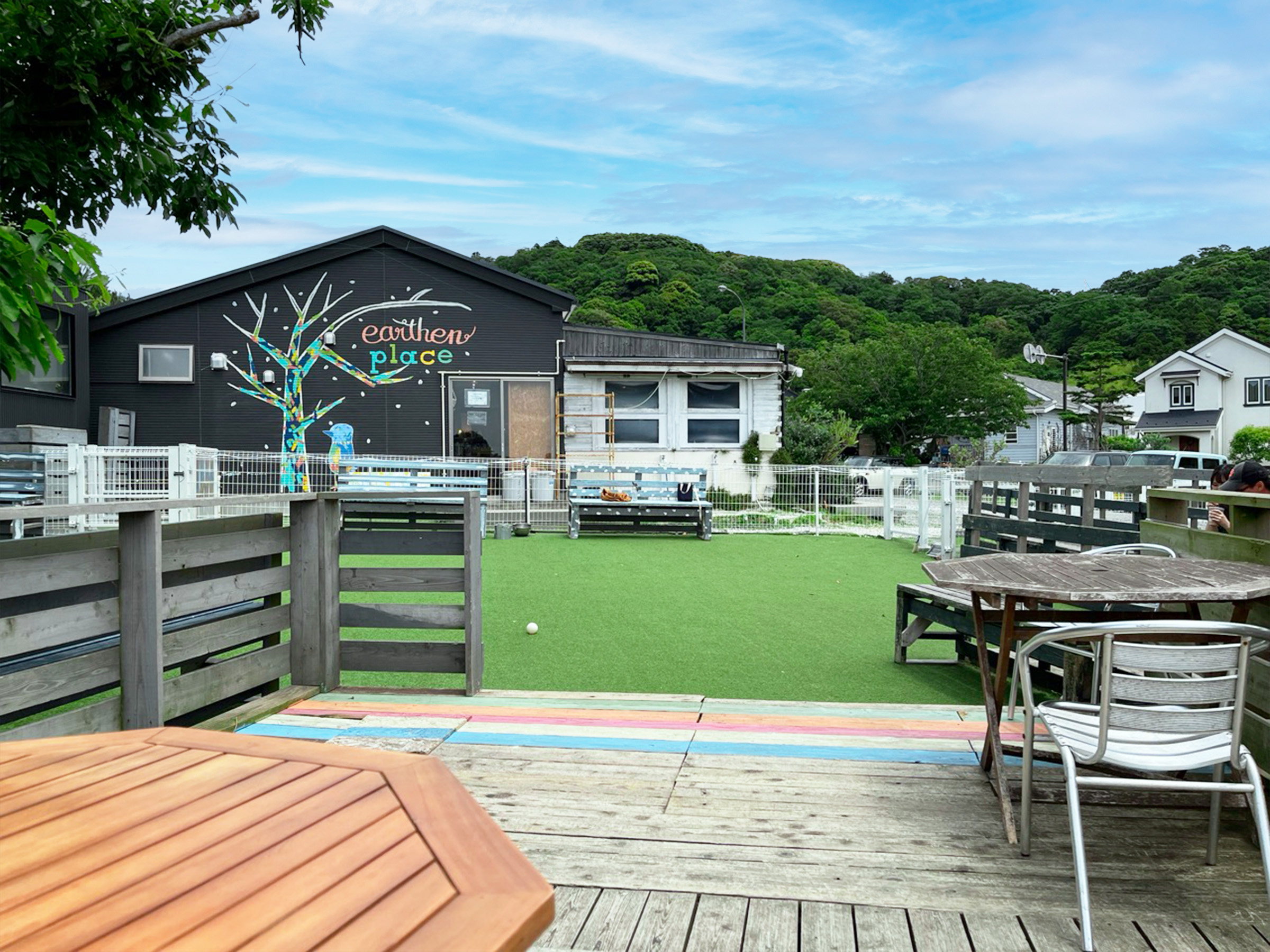 秋谷海岸にほど近い「earthen place(アーセンプレイス)子安の里」は、ドッグラン併設のガーデンカフェ。自然豊かな丘陵地に位置し、まるで高原のような心地よい風が吹き抜けます。