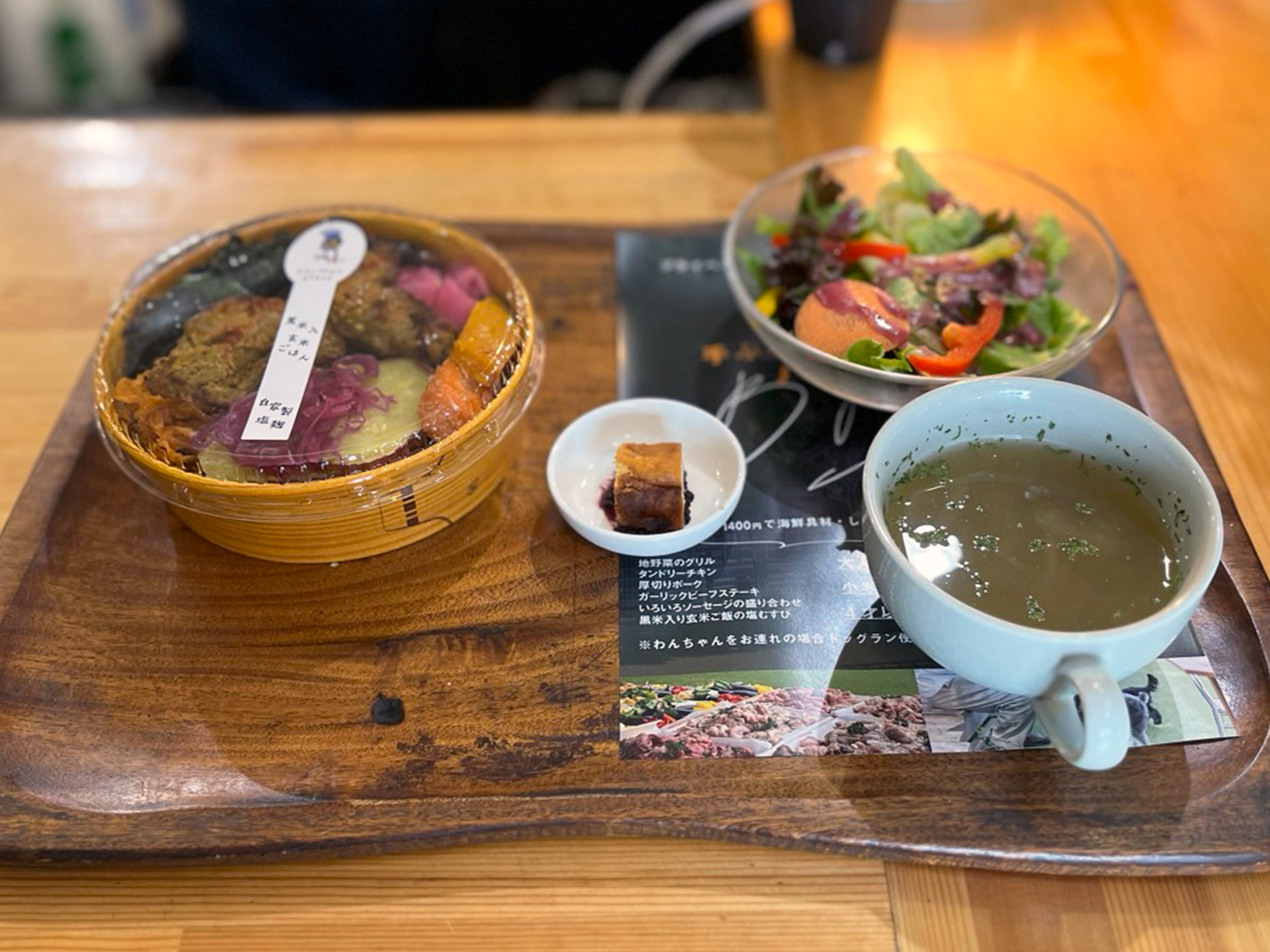 他にも、「塩麹漬け焼き魚」「味噌漬けポーク」「タンドリーチキン」の計4種類(各1030円税別)が用意。店内や愛犬とドッグランで楽しむことができます。