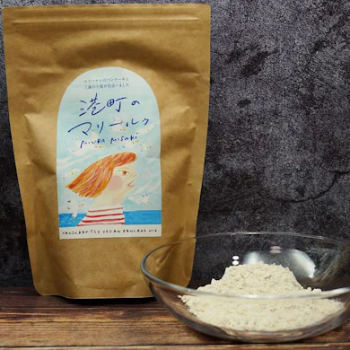 「マリールゥのパンケーキミックス 三崎ラボ直売所」では、無調整豆乳と混ぜて焼くだけでおいしいパンケーキを作れるパンケーキミックスを販売しています。三浦移住前に玄米菜食カフェを経営していた際に開発した、動物性の食材である卵と牛乳を使わずにふんわりおいしく食べられるパンケーキで、直売所ではケーキ粉を購入できます。