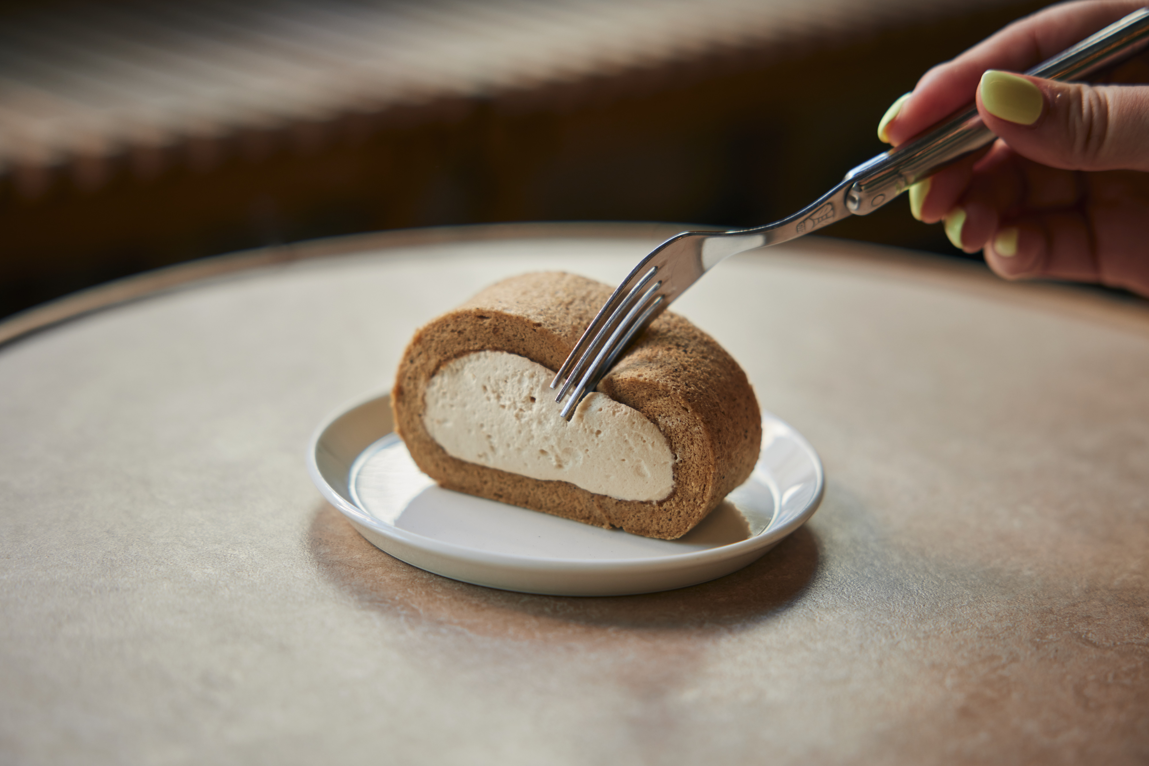 ひと口食べるとふわっとコーヒーの香りが広がり、たっぷりのクリームも甘過ぎずほんのりビターな風味。「抽出したての新鮮なコーヒーを使用することで、香り高い風味を楽しめます。コーヒー屋だから作れるロールケーキです」と内野さん。
