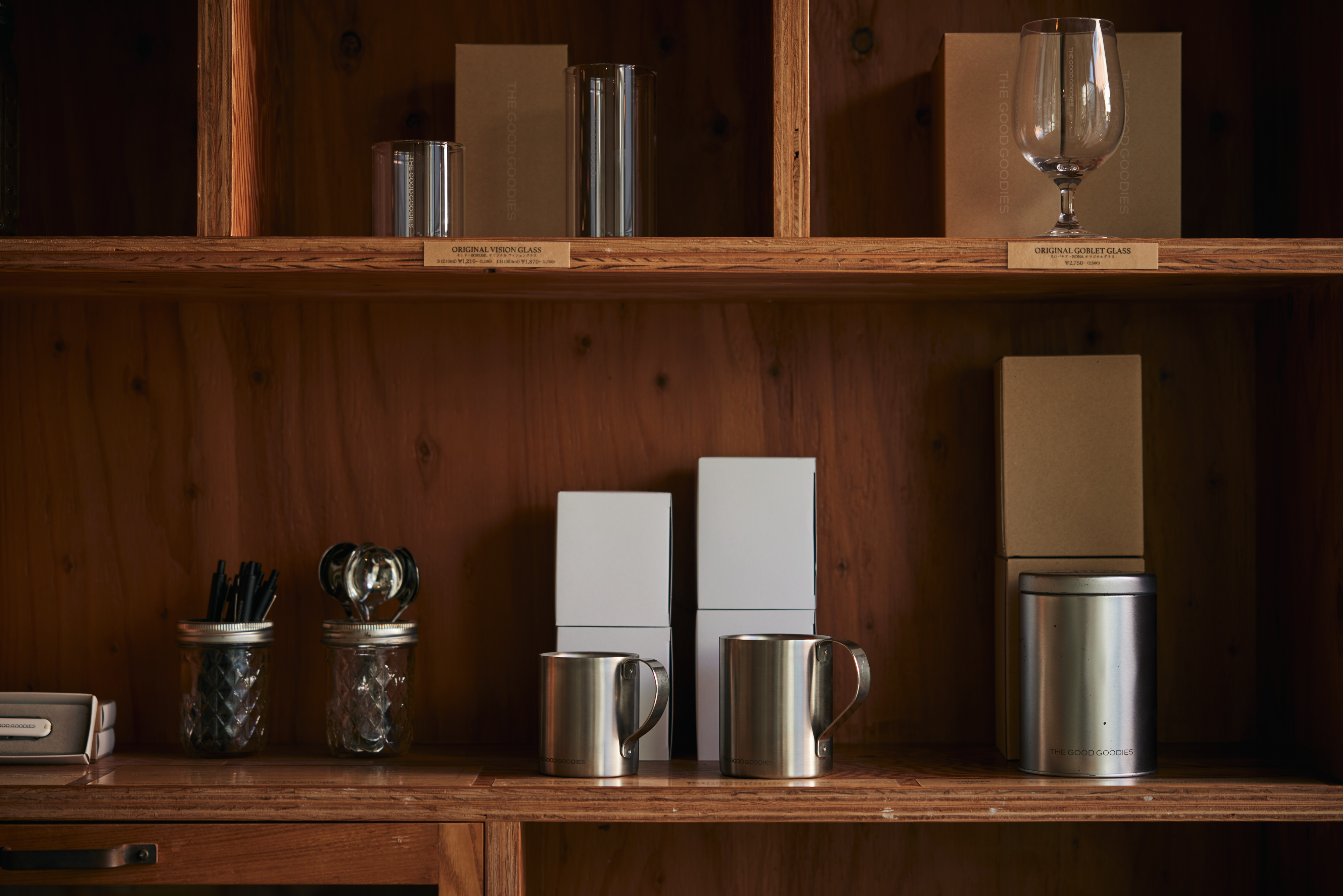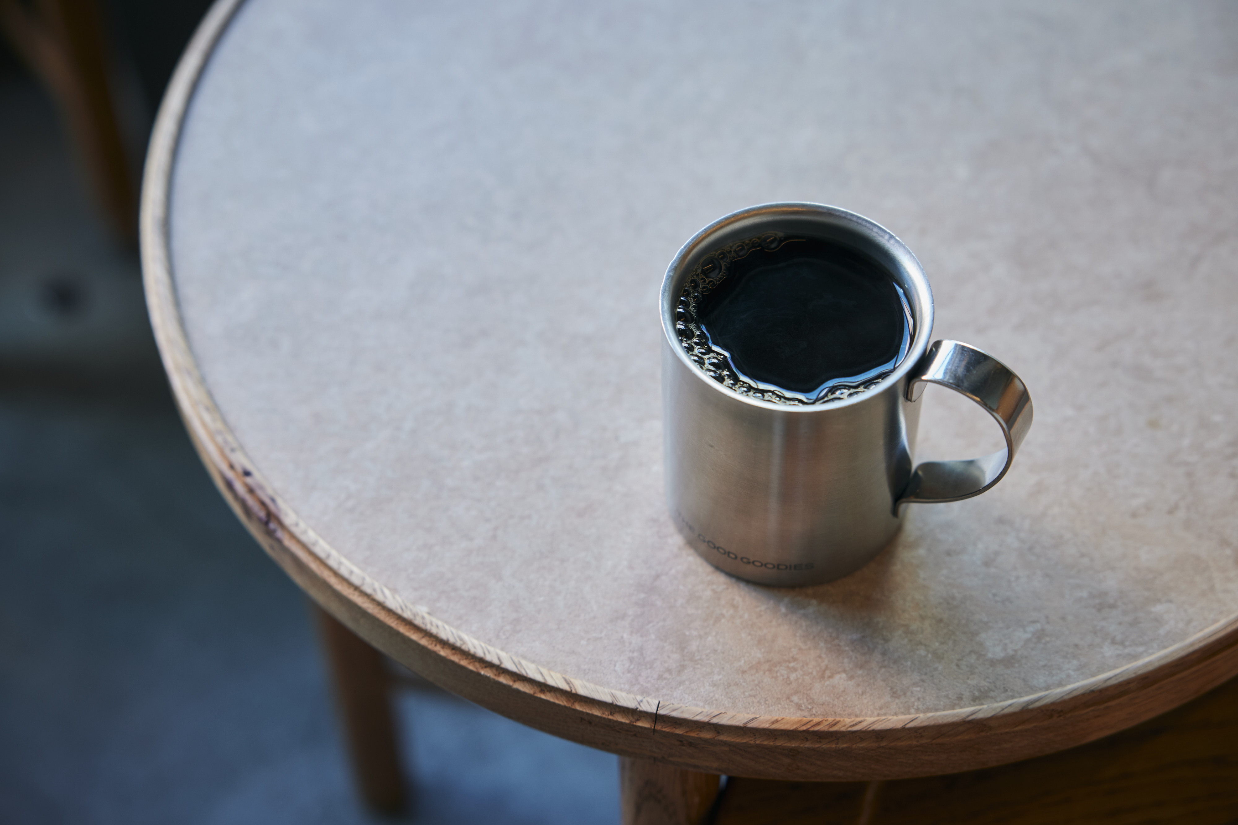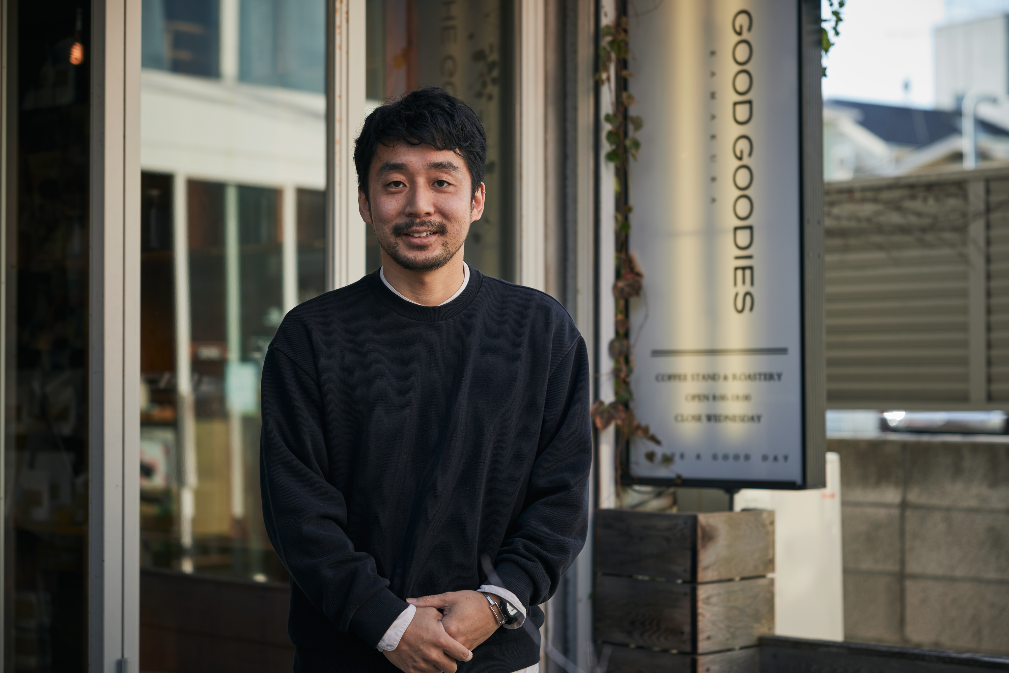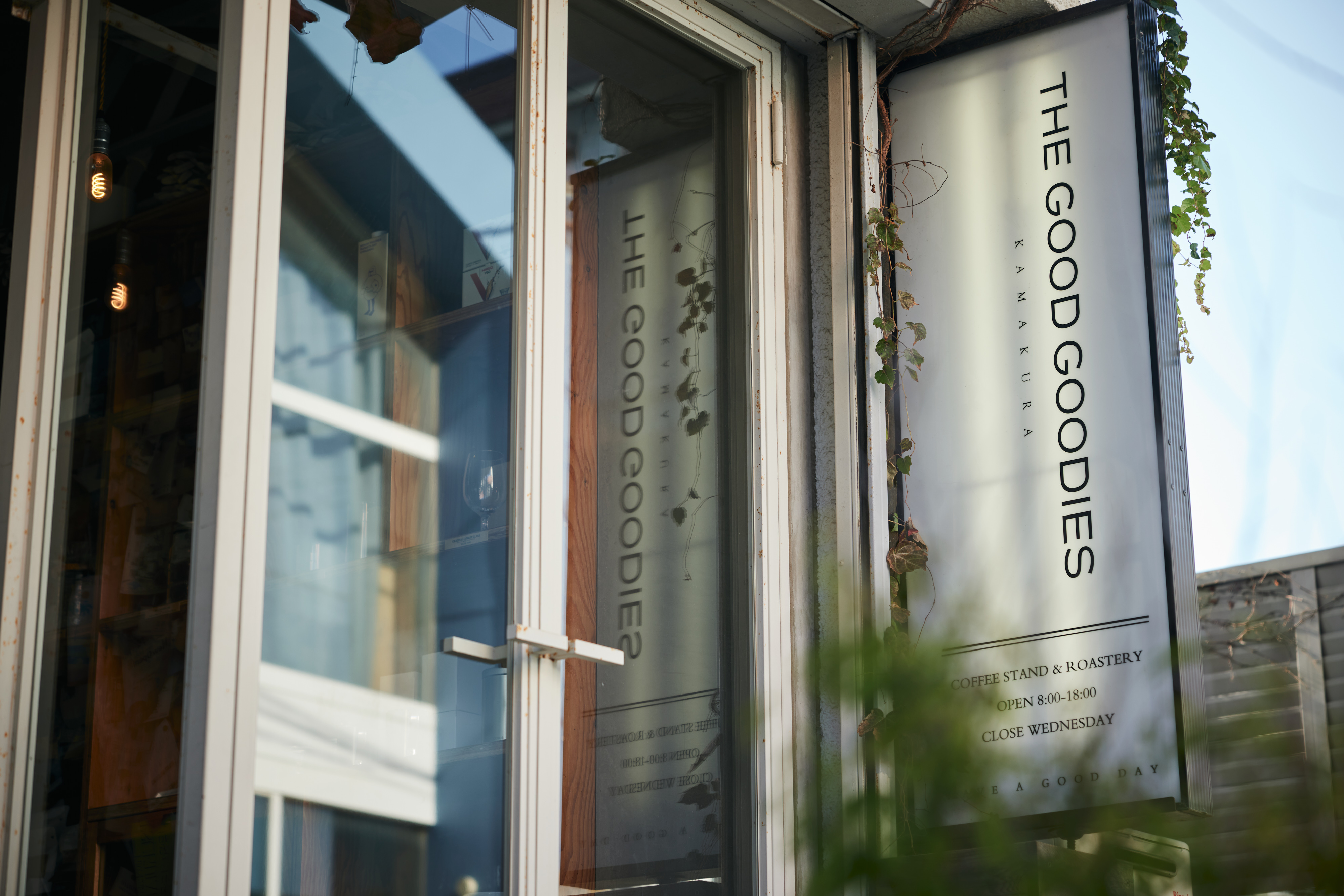 観光客であふれるにぎやかな小町通りと比べ、駅を挟んだ反対側にある御成通りは穏やかな雰囲気。路地を入ると静かな住宅地が広がり、ここで暮らす人たちの生活の動線にもなっています。御成通りの路地裏で看板を掲げる「THE GOOD GOODIES」は、そんなローカルたちが日常的に通うコーヒーショップです。