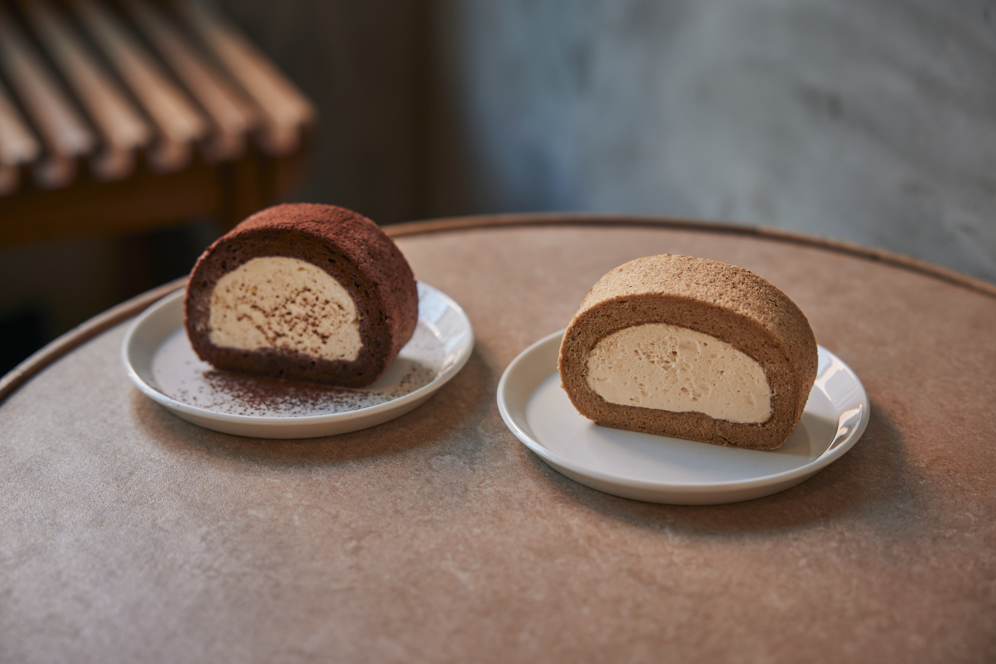 「ケーキがシンプルなだけに誤魔化しがきかないので、生地やクリームにはてんさい糖を使用するなど素材にこだわって作っています。ロールケーキは、エアロプレスで濃く抽出したコーヒー液と粉末を加えて生地を焼いて、クリームにも同じくコーヒー液を使用しています」