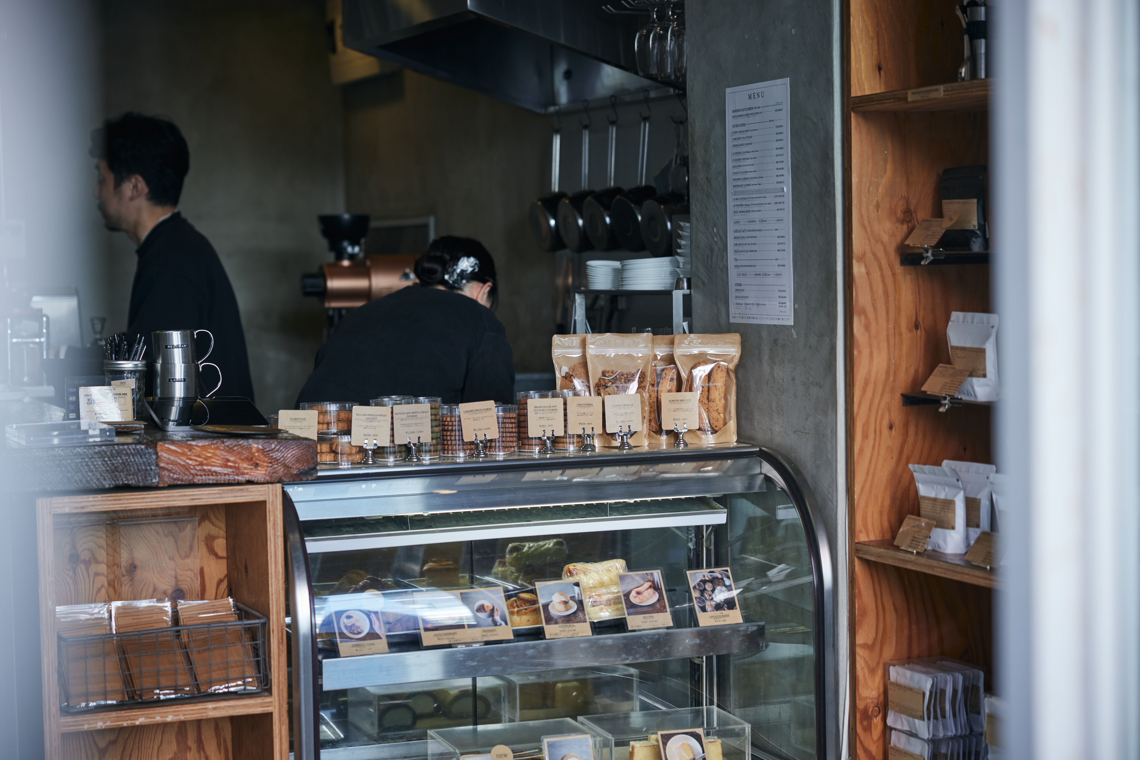 お店の看板商品はハンドドリップで淹れるコーヒーですが、ここ数年は自家製のスイーツメニューが続々と登場。レジカウンターのケースに、“コーヒーに合う”ように作られた家庭的でシンプルなケーキや焼き菓子が並んでいます。