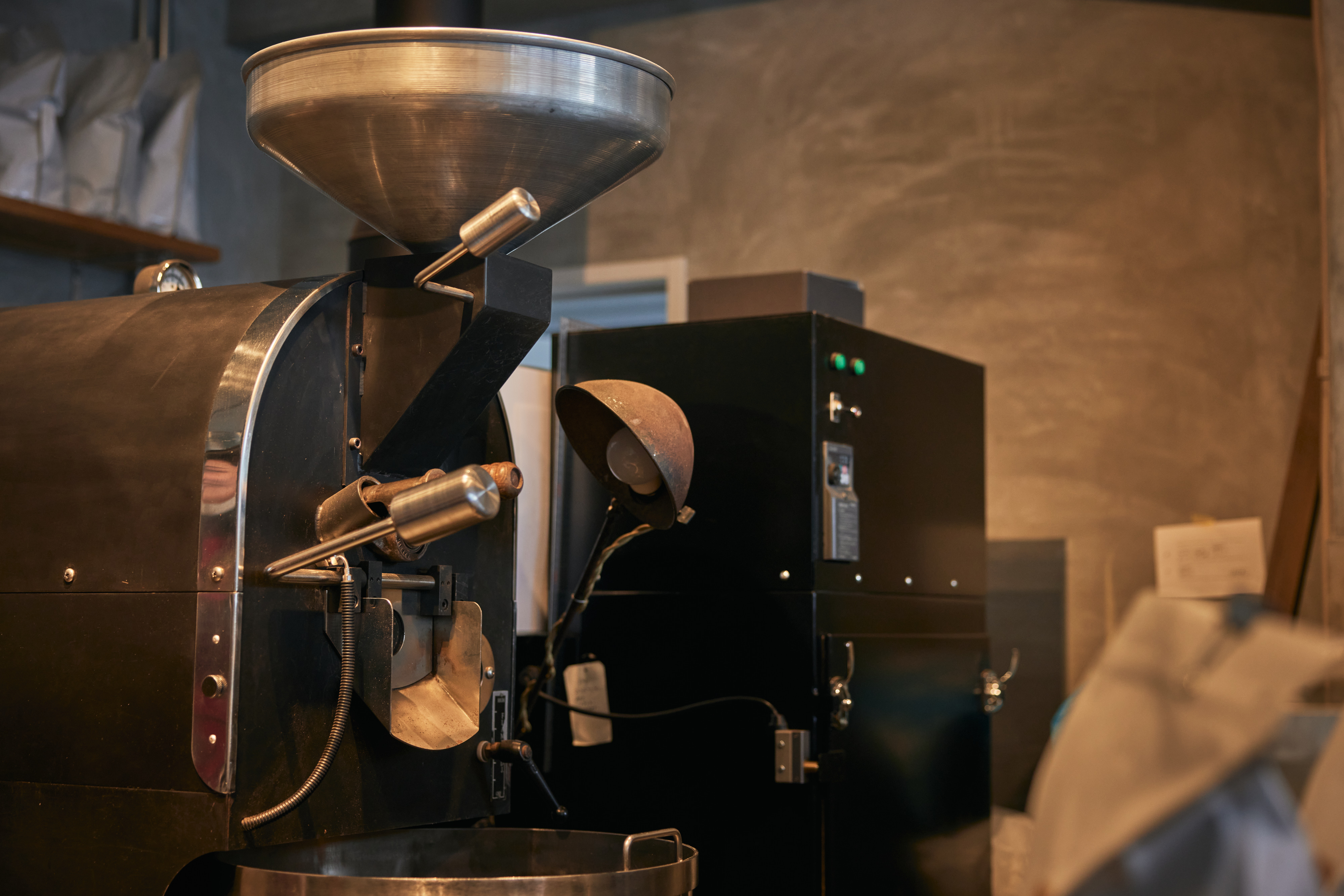使い込んだ風合いがかっこいい焙煎機は、東京の「オニバスコーヒー」から譲り受けたもので創業時に使用していた初代の焙煎機だそう。