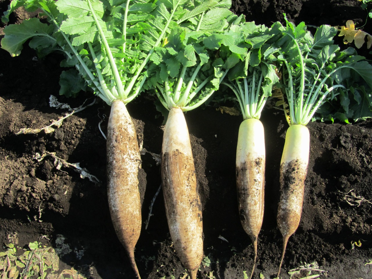 「三浦大根」と聞くと、三浦市産の青首大根を思い浮かべる方も多いかもしれません。しかし、実はこの二つは別物。青首大根が1kg前後なのに対し、三浦大根は重さ約3kg、大きいものは5~8kgにもなる、ずっしりとした大根です。その歴史は古く、大正時代にさかのぼります。当時、主流だった練馬大根をベースに、三浦在来種の高円坊大根との交雑改良によって誕生しました。そして今年は、三浦大根と命名されて100周年を迎える節目の年になります。