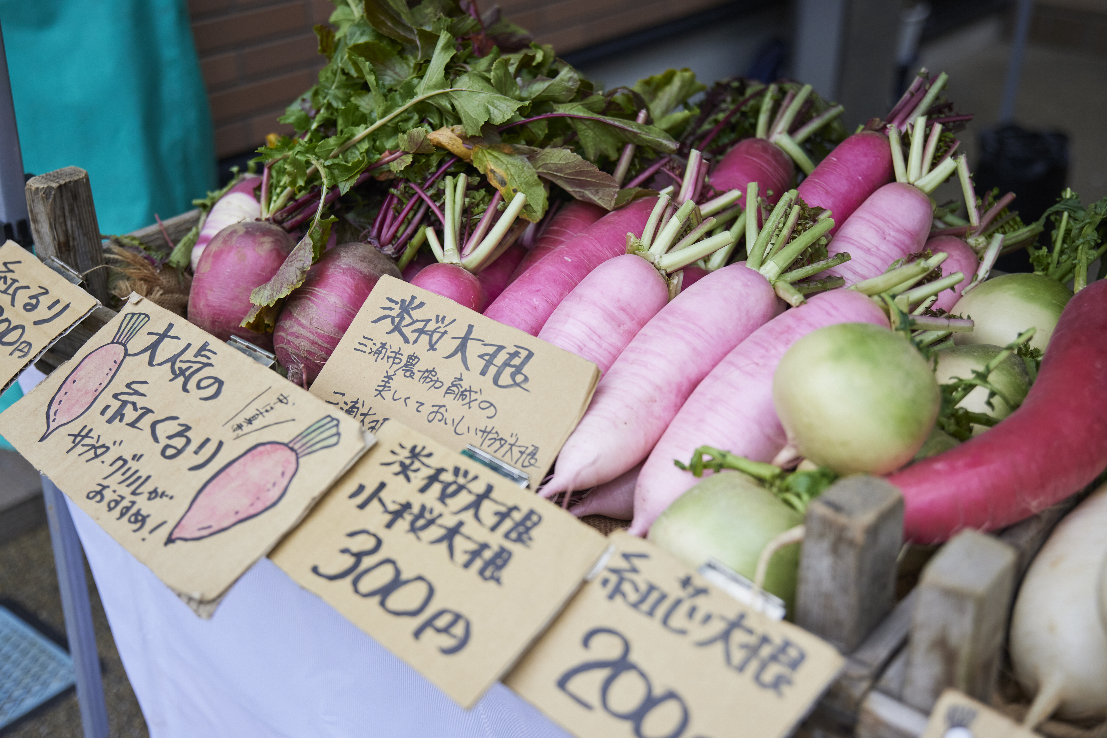 12月の終わり、根菜の甘みをいっそう引き立てるような寒さが続く頃。鎌倉・長谷の「星の井通り」にある八百屋「ハレトキ」では、とってもユニークなイベントで賑わっていました。その名も、MIURA DAIKON FESTIVAL!三浦大根をはじめ、三浦産の大根がなんと12種類もずらりと並んでいる光景に、通りかかる人々も思わず足を止めていました。